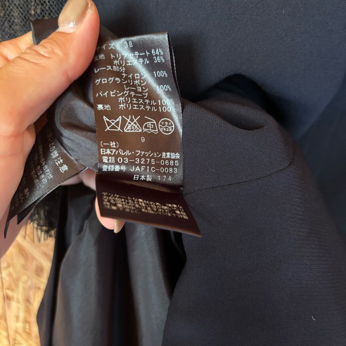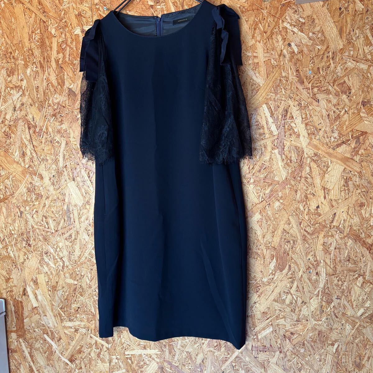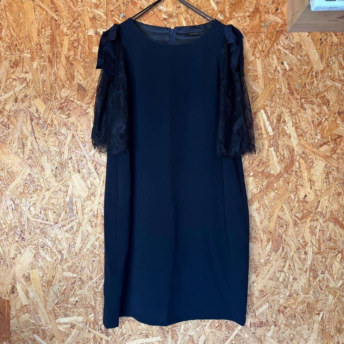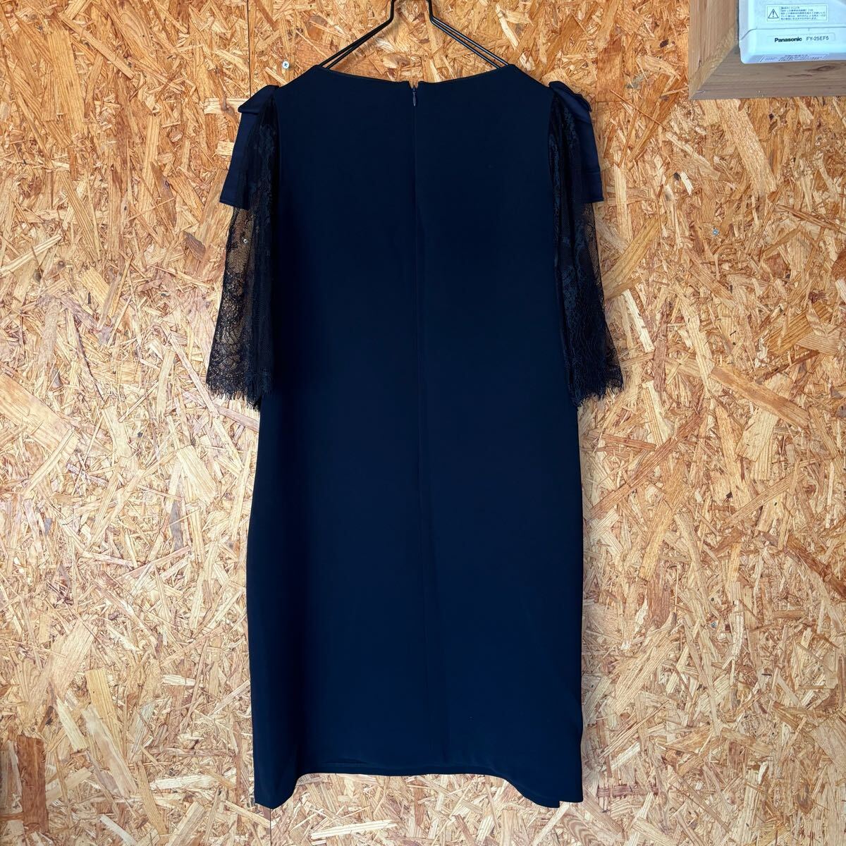 美品 AMERICAN RAGCIE 日本製 ワンピース フォーマルワンピース 袖レース 肩リボン ひざ丈ワンピース ネイビー 4710