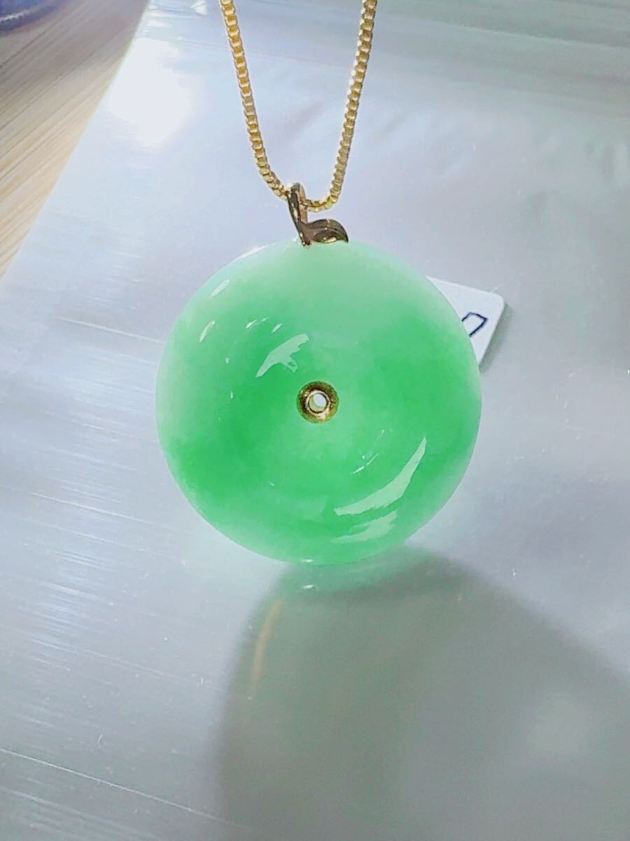 MY R2-0257天然本翡翠《本物保証》 緑翡翠 糯肌 完璧品 平安叩ペンダント K18 チェーンS925 一点物 希少 縁起物 お守り パワーストーン