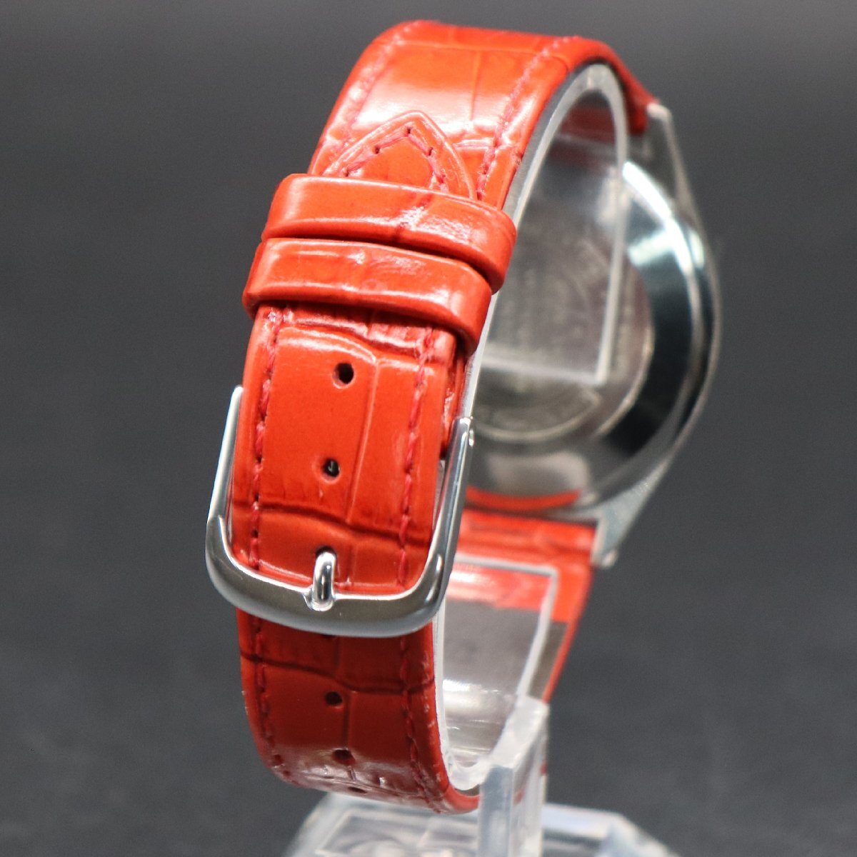 平置きで12時間動作確認済み、大幅な遅れなく稼働中です。 リューズ一段引きで時刻調整が可能です。 ※アンティーク時計を長くお使いいただくため、 丁寧に、やさしく操作していただくようお願いいたします。 ケースに使用に伴うキズ・小打痕など見受けられますが、 風防はキズ少なく、目視できれいな状態です。 文字盤は微細なチリ程度で、絹目柄きれいです。 針・インデックス・植字ロゴ、傷み少なく良好です。 プリント印字、消えなく鮮明です。 経年を考えると、とてもきれいなダイアルです。 裏蓋刻印、鮮明です。 ベルトは、新品の国内メーカー製革ベルトに交換済みです。 状態について、詳しくは画像にてご判断願います。 | |