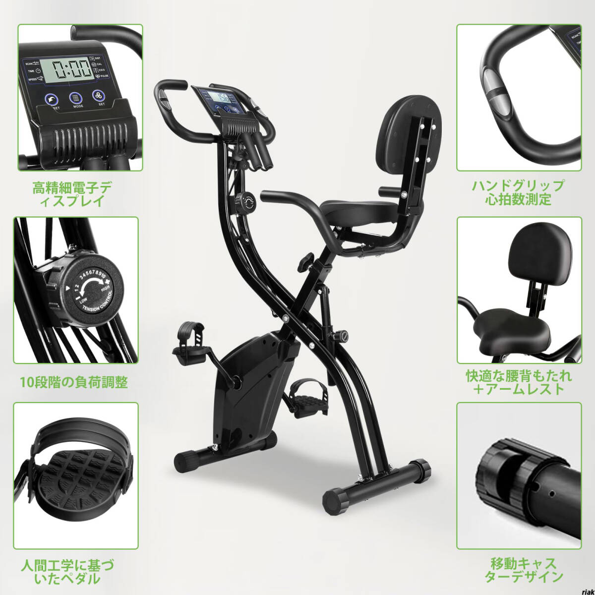 【静音設計のマグネット式フィットネスバイク】 エアロバイク 多段階負荷トレーニング 折りたたみ式 ダイエット器具 心拍数計測