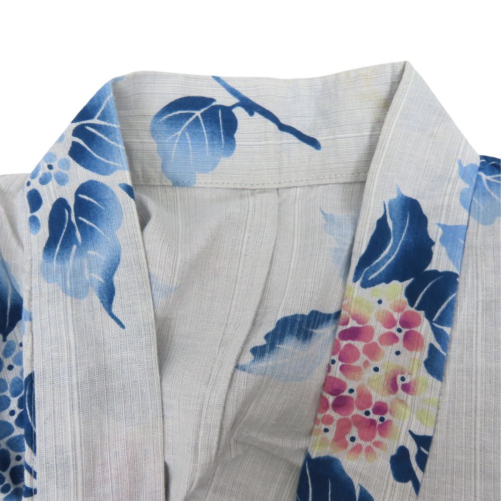 品名 【中古】 浴衣 綿 麻 グレー系 ブルー系 変わり生地 アジサイ 大人可愛い レディース 女性