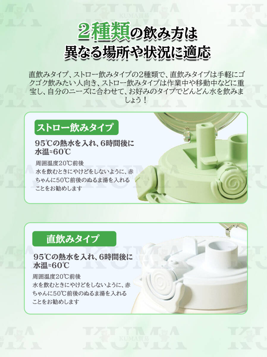 【2種類の飲み方は異なる場所や状況に適応】直飲みタイプ、ストロー飲みタイプの2種類で、直飲みタイプは手軽にゴクゴク飲みたい人向き、ストロー飲みタイプは作業中や移動中などに重宝し、自分のニーズに合わせて、お好みのタイプでどんどん水を飲みましょう!<br>