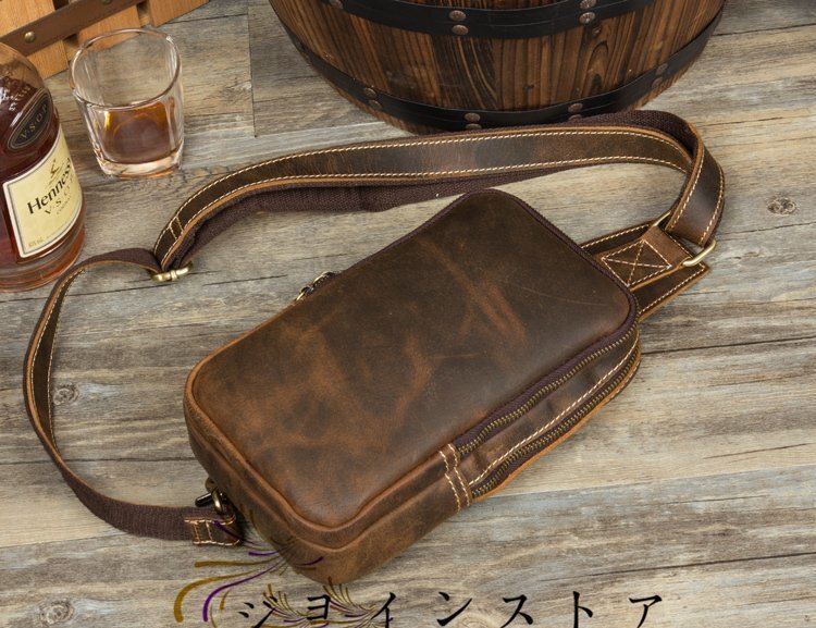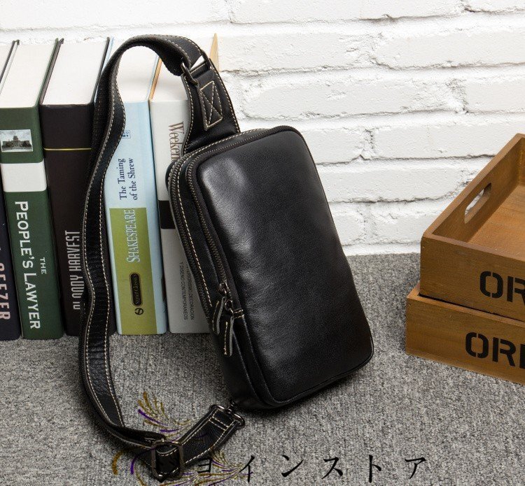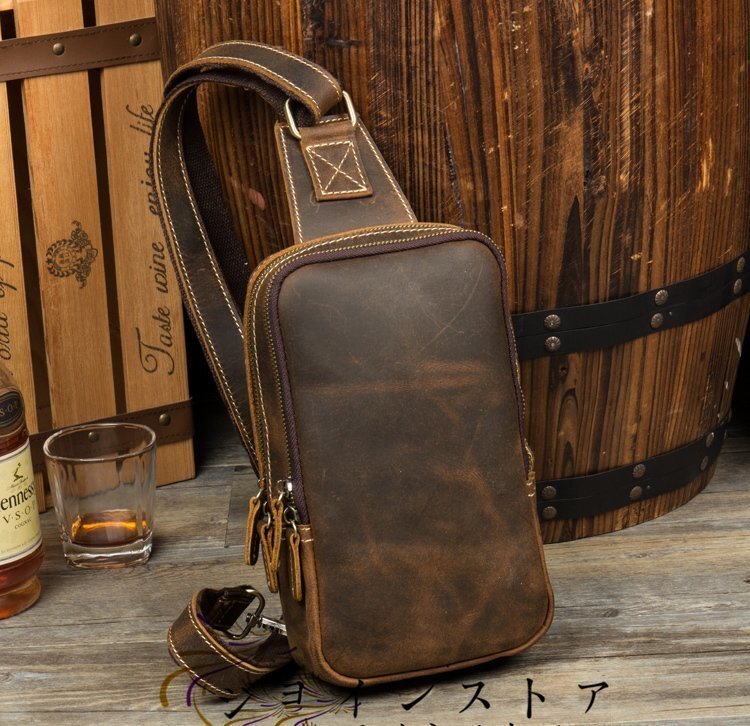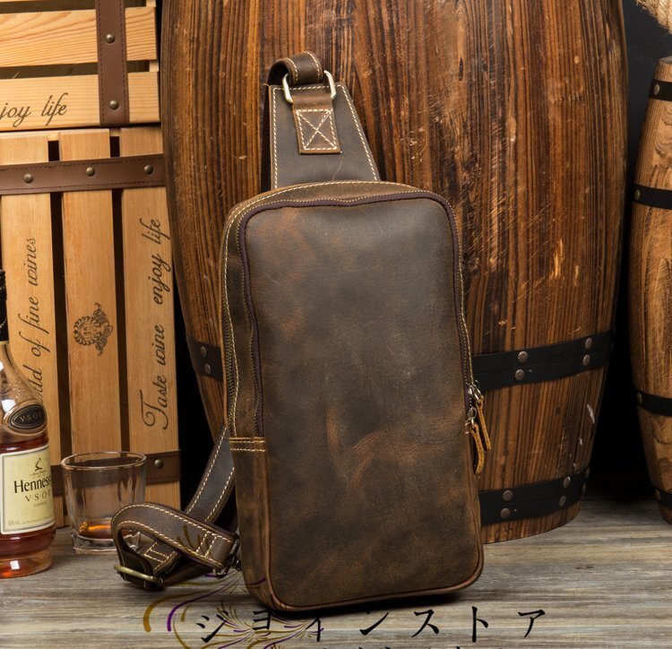 超人気★ ボディーバッグ 斜めがけバッグ 本革 牛革メンズ ショルダーバッグ 斜めがけ ワンショルダー 革製 レザー 軽量 コーヒー