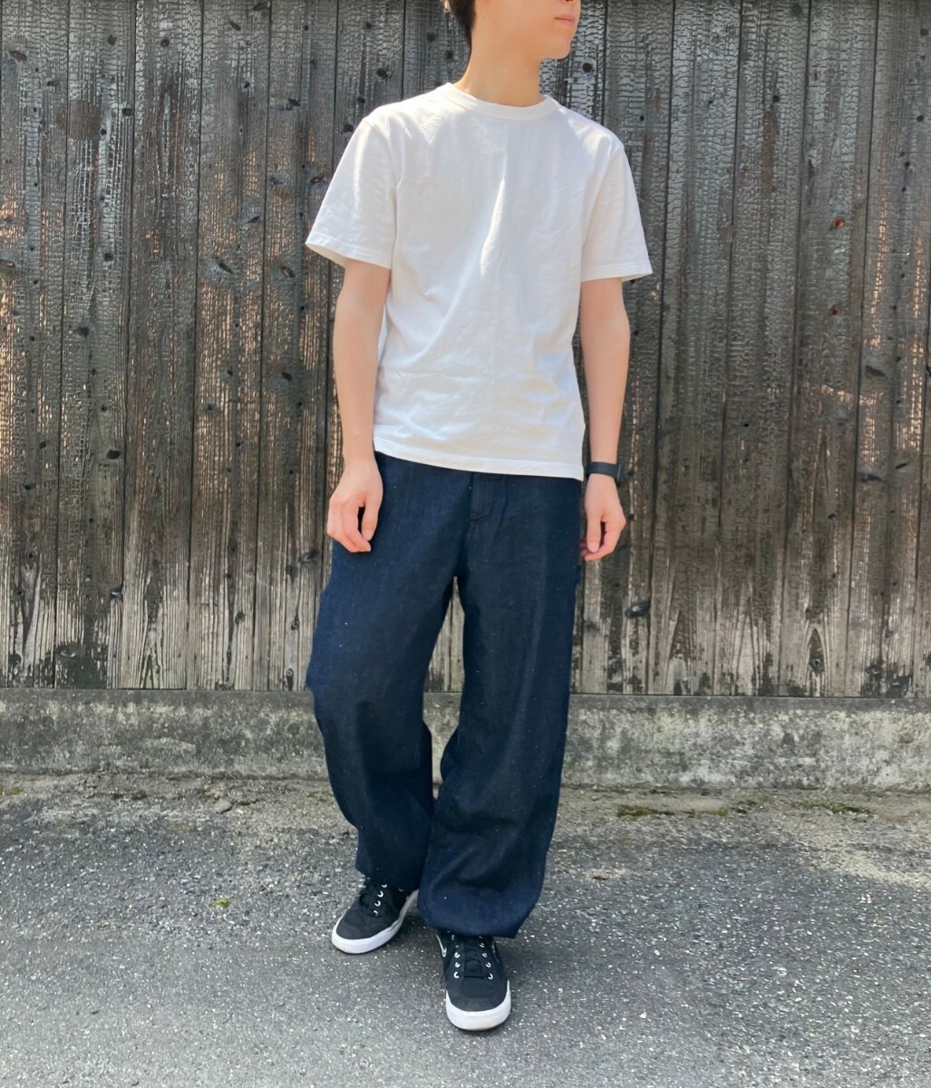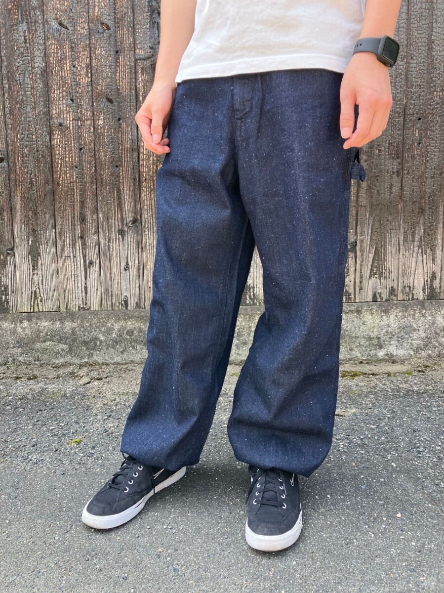 生地は8ozの綿麻ネップデニムで軽くて柔らかく暖かい季節でも履けます。