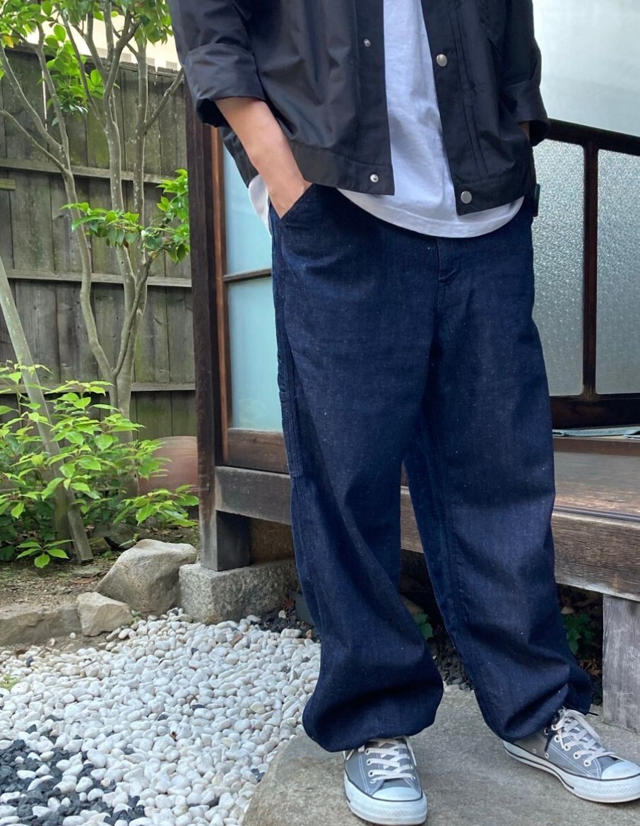 ベーシックデザインのシンプルな太めのすペインターパンツ。