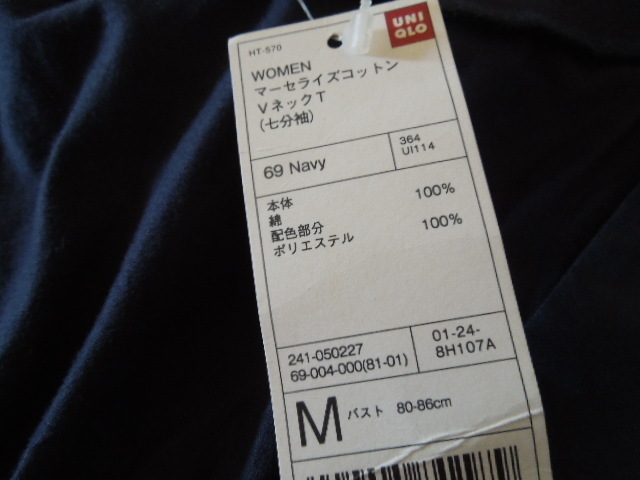 UNIQLO マーセライズコットン VネックTシャツ!Mサイズ・紺・新品