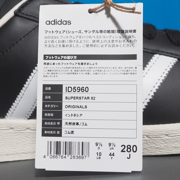 デッド!! US 10 /28cm 新品!! 限定 23年 adidas スーパースター 82 黒x白 SUPERSTAR 82 天然皮革 80s