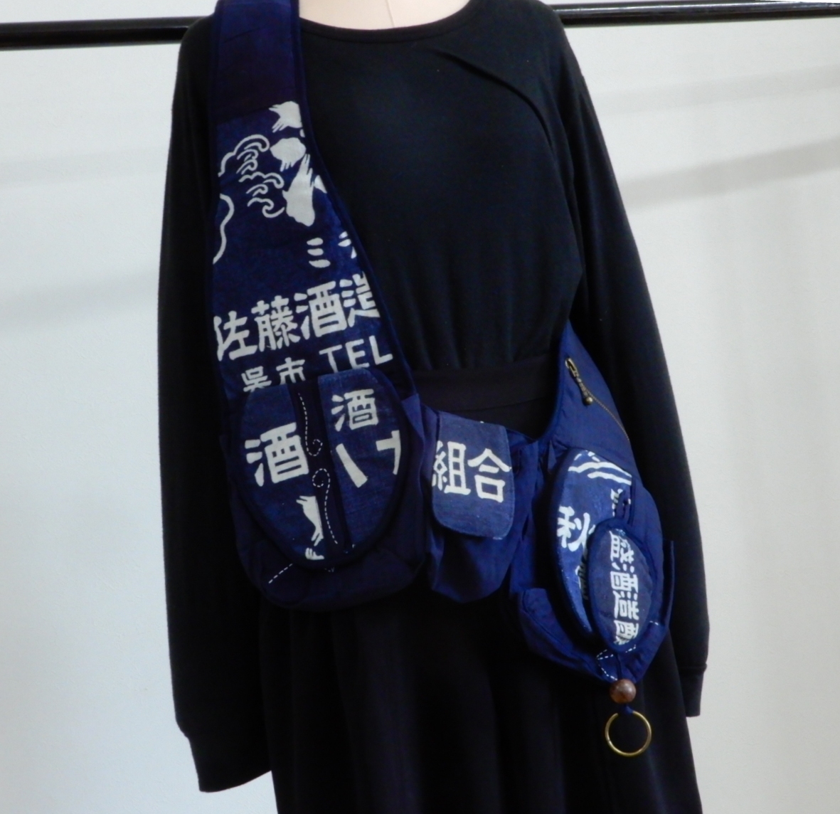 <銀の斧>木綿・昔の商人前掛のポケットバッグ・ベストバッグ・その②
