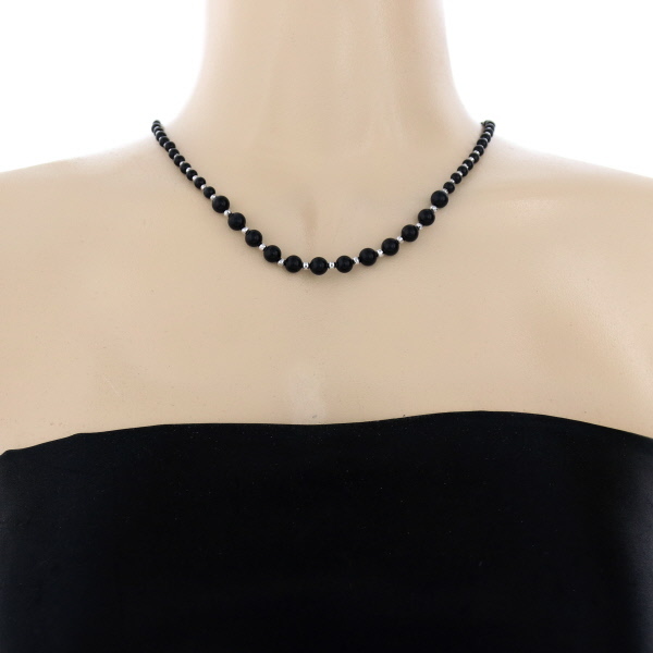 | 商品紹介 | ホワイトゴールド製の留め具を備えたDr.シリカ グラデーションネックレスでございます。 黒鉛珪石(ブラックシリカ)の粒の大きさがグラデーション状に変化しており、シックでモダンな印象を与えます。 間に配されたミラーボールがキラキラと輝き、全体のデザインにアクセントを加えています。 普段使いから特別な日まで、幅広いシーンでファッションのアクセントとしてご愛用いただける逸品です。 |