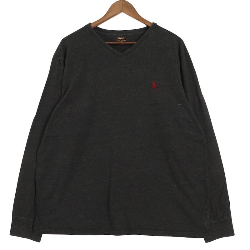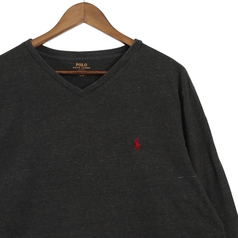 Polo Ralph Lauren ポロラルフローレン VネックロングスリーブTシャツ メンズUS-XXL ヘザーグレー 長袖 ロンT hsc-0649n