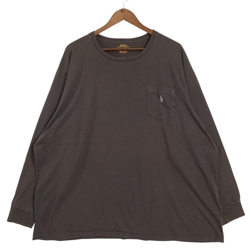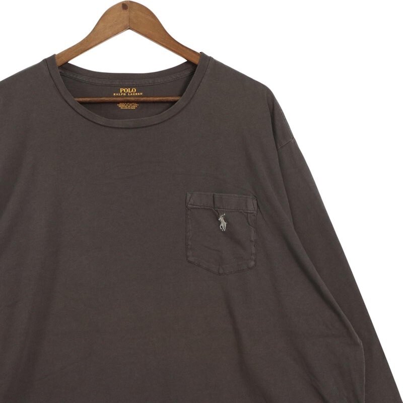 Polo Ralph Lauren ポロラルフローレン クルーネックロングスリーブTシャツ ポケット付き メンズUS-3XLT D.グレー 長袖 ロンT hsc-0650n