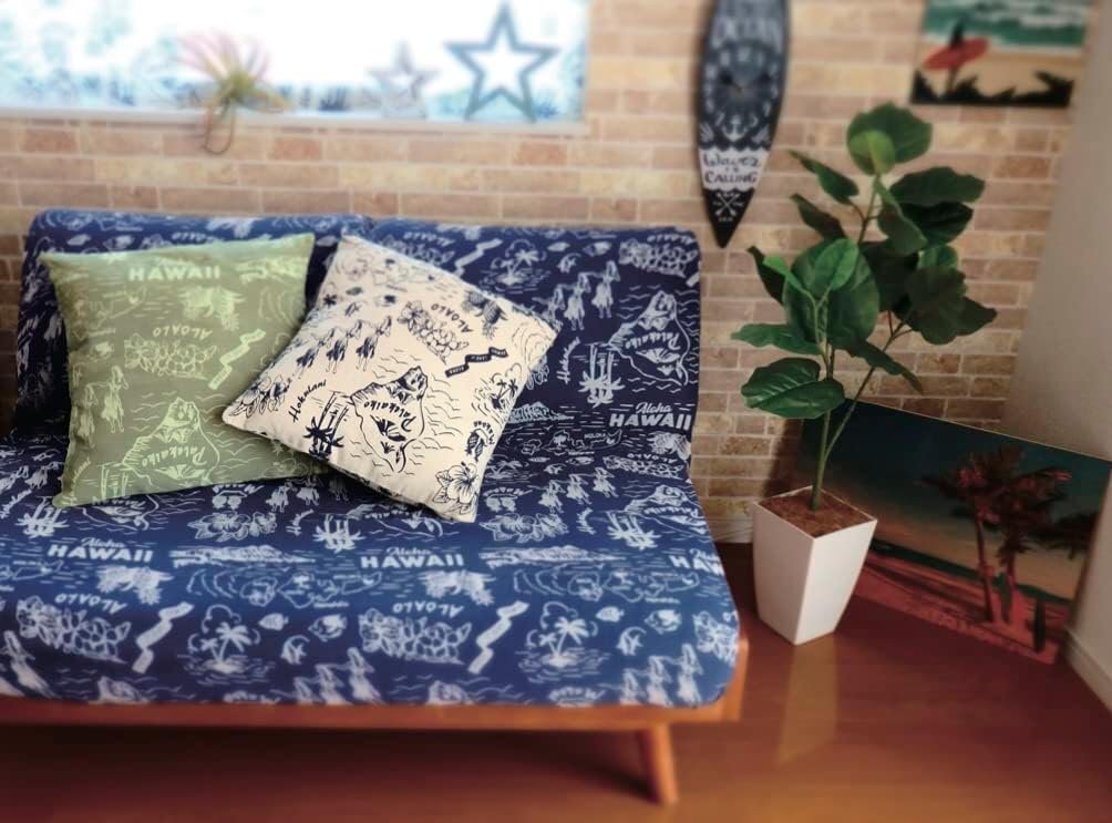 ヴィンテージ調アロハ柄の、コットン素材「マルチカバー」です。