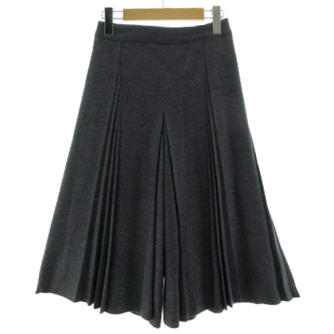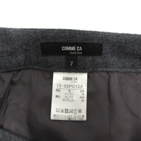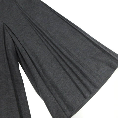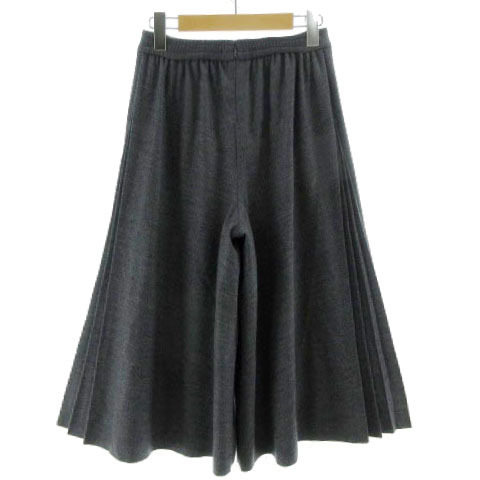 コムサ COMME CA パンツ ワイド クロップド丈 スカンツ プリーツ ウエストゴム 起毛 ウール混 グレー 7 レディース