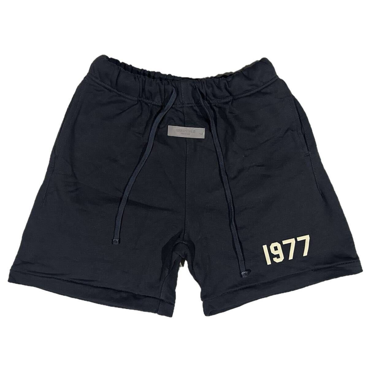 [並行輸入品] FEAR OF GOD FOG ESSETIALS エッセンシャルズ 1977ロゴ ハーフパンツ (ブラック) (XL)