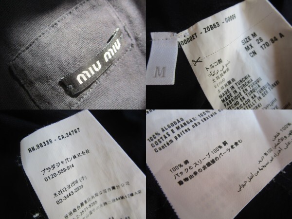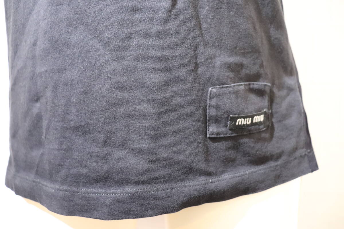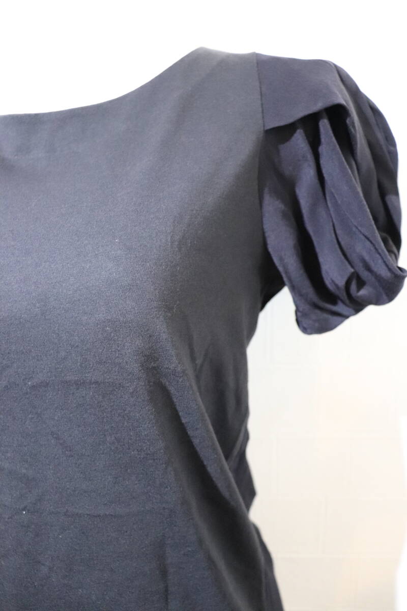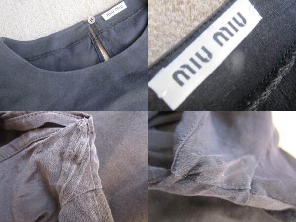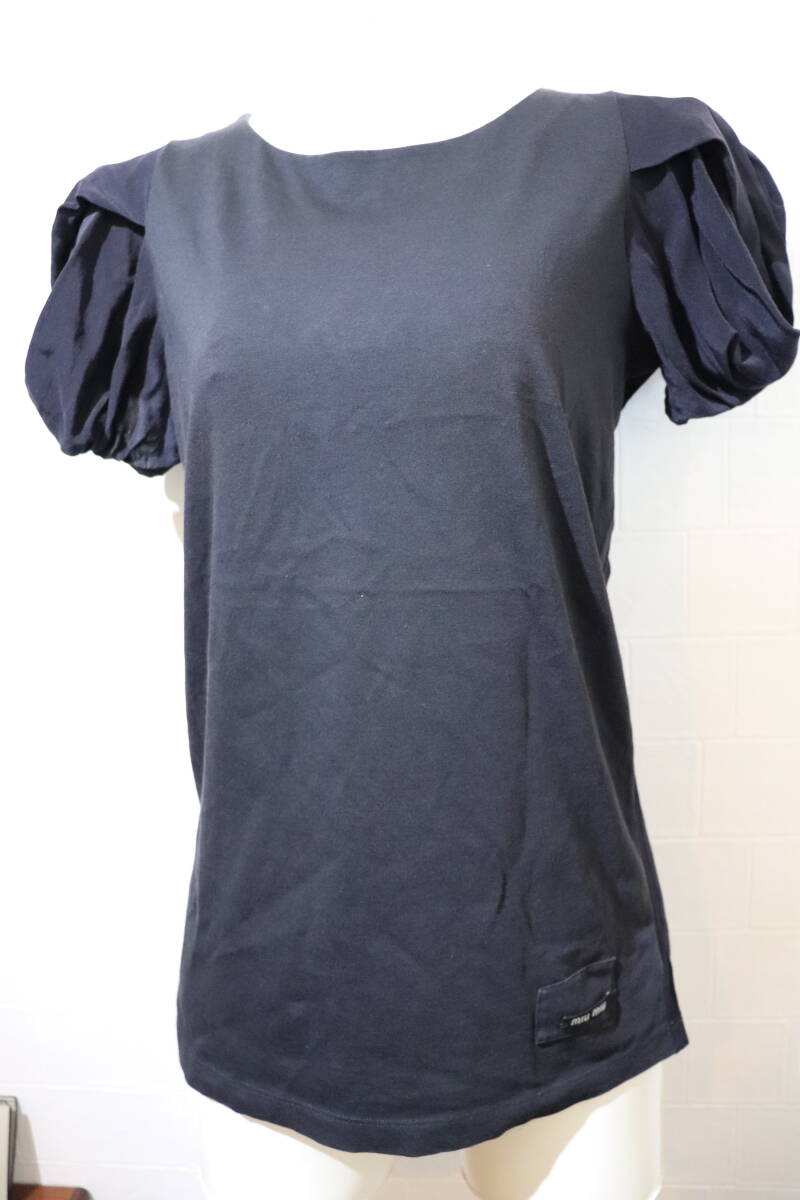 2000年代初頭 即決 miu miu ミュウミュウ アーム&背面シルクシフォン切替 立体プリーツアーム 半袖カットソー 切替Tシャツ レディースM 黒