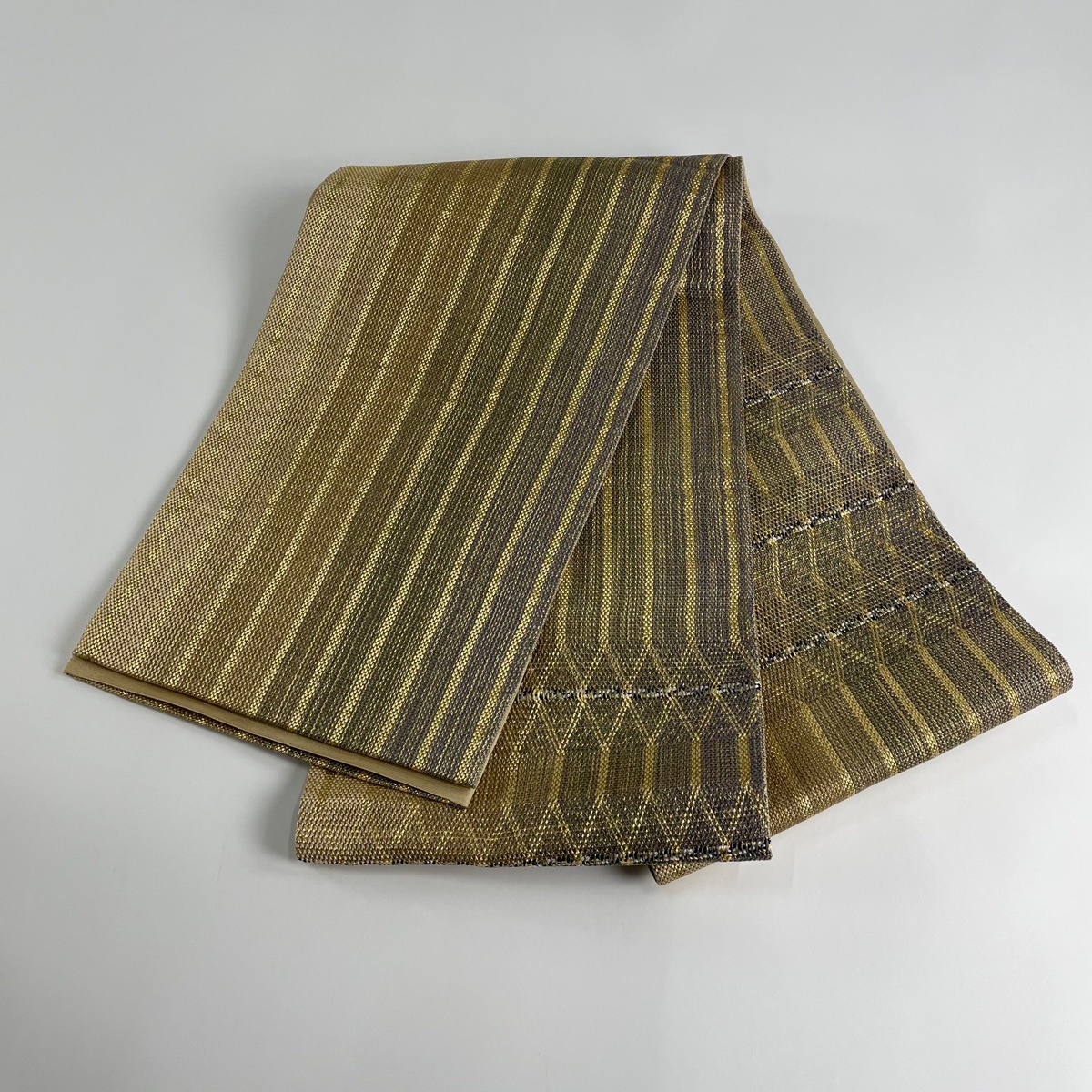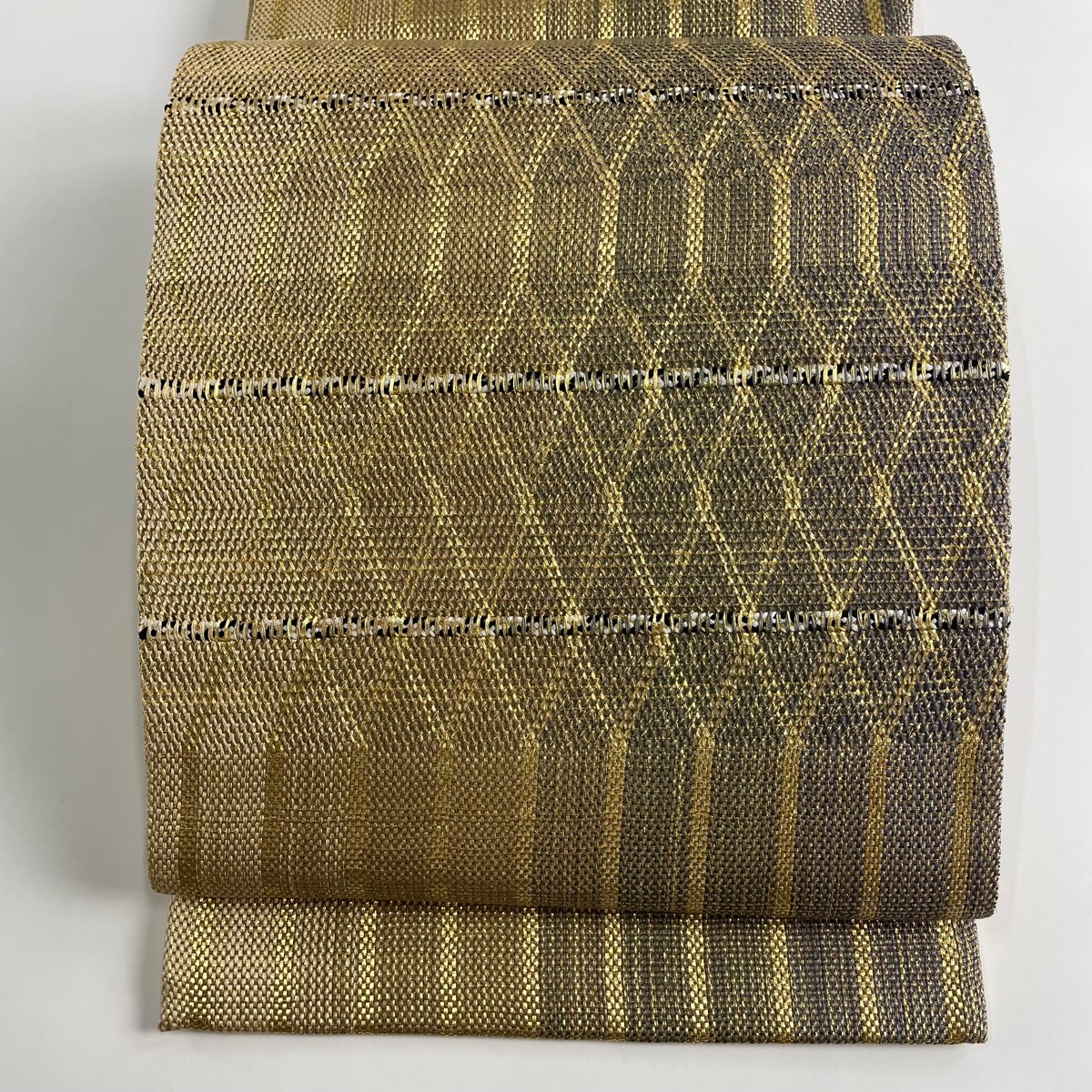 | 袋帯 美品 秀品 幾何学 金糸 刺繍 金色 お太鼓柄 正絹 【中古】 |