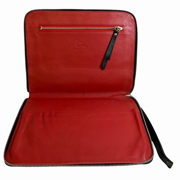 | 【ブランド】クリスチャンルブタン 【商品名】CRIS CASE スパイクミックス 【型番】3135043 【カラー】ブラック 【素材】レザー 【仕様】外側:ポケットなし 内側:ファスナー付ポケット×1 【サイズ】H約20.5cm×W約27cm×D約2cm 【付属品】なし 【ランク】B (使用感あり) 【状態】 持ち手、ショルダー:外側の状態:擦れ、角擦れ、汚れ、中程度有り 内側の状態:擦れ、汚れ、シワ、中程度有り 金具の状態:擦れ、傷、中程度有り | |