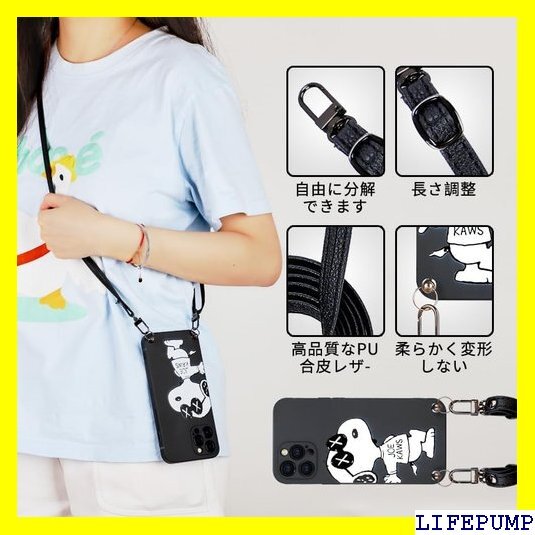 iPhone12 Miniケース スヌーピー ショルダ TPU ストラップ付き 携帯ケース ワイヤレス充電対応 1171
