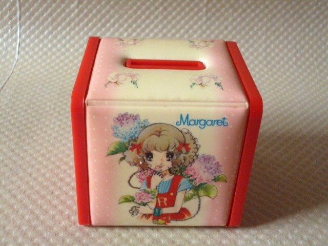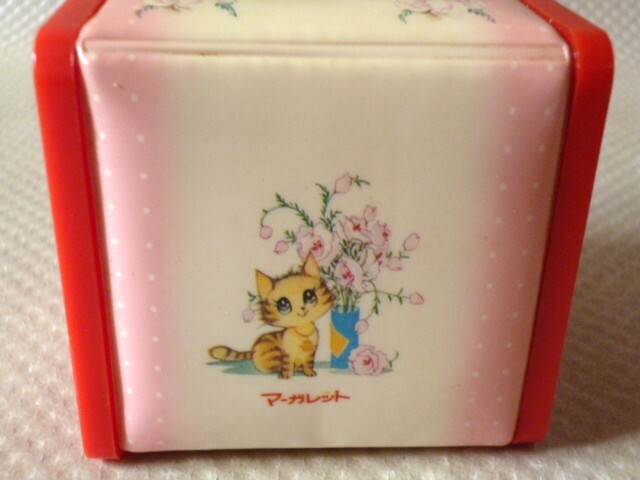 昭和レトロ 当時物 ベニス VENICE マーガレット 少女 猫 花 フラワー 鈴木千鶴子 四角 貯金箱 ファンシー雑貨