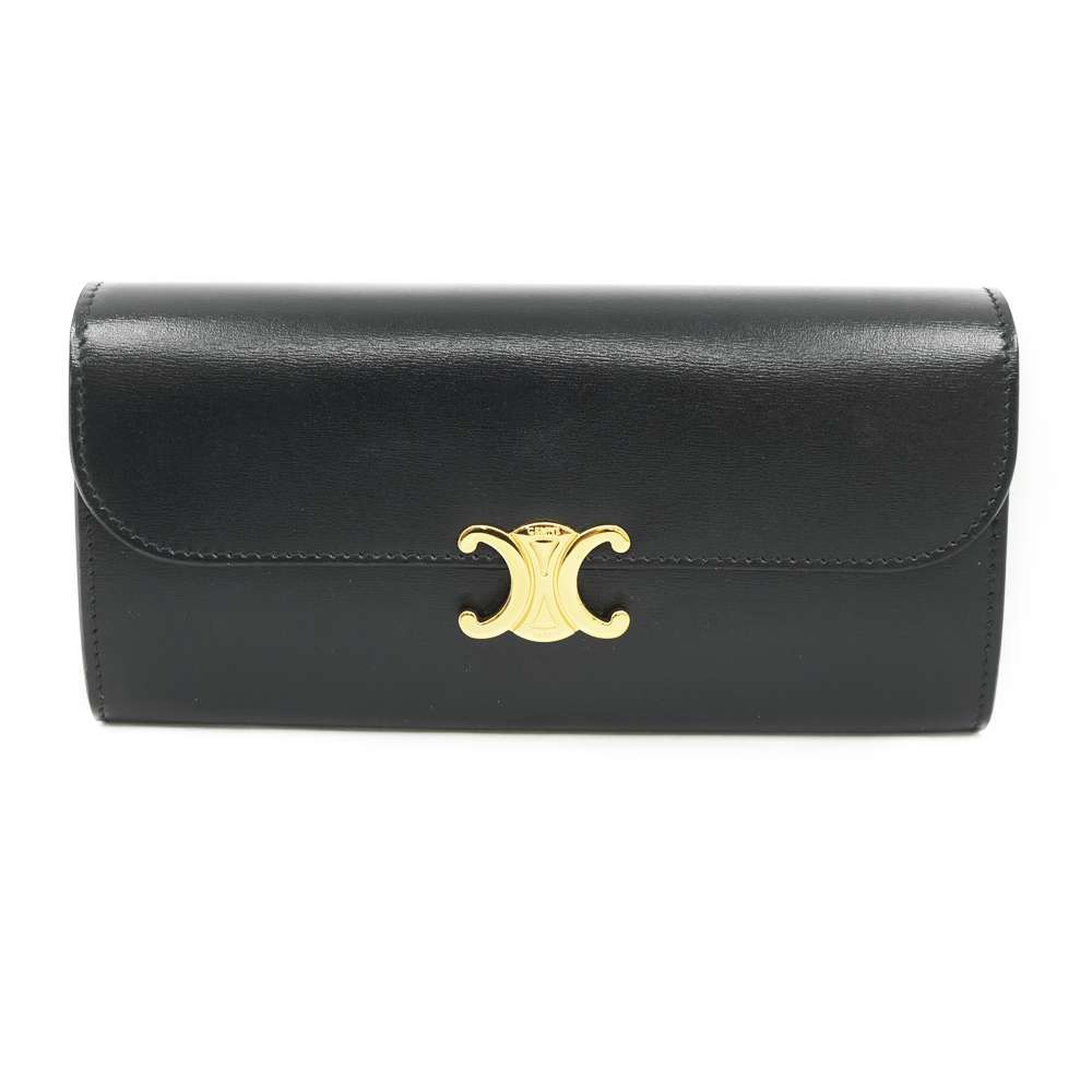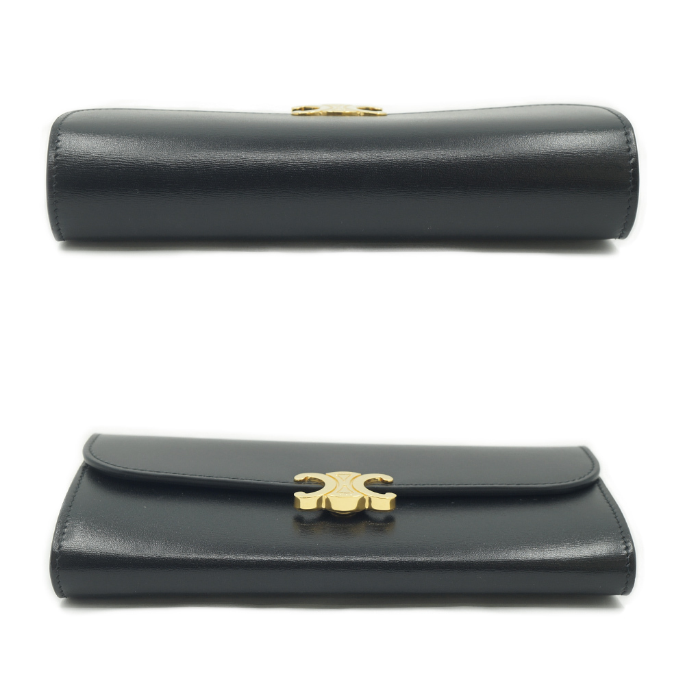 【栄】セリーヌ 10E313DPV.38NO トリオンフ シャイニーカーフスキン 二つ折り長財布 黒 GD金具 本体品のみ その他