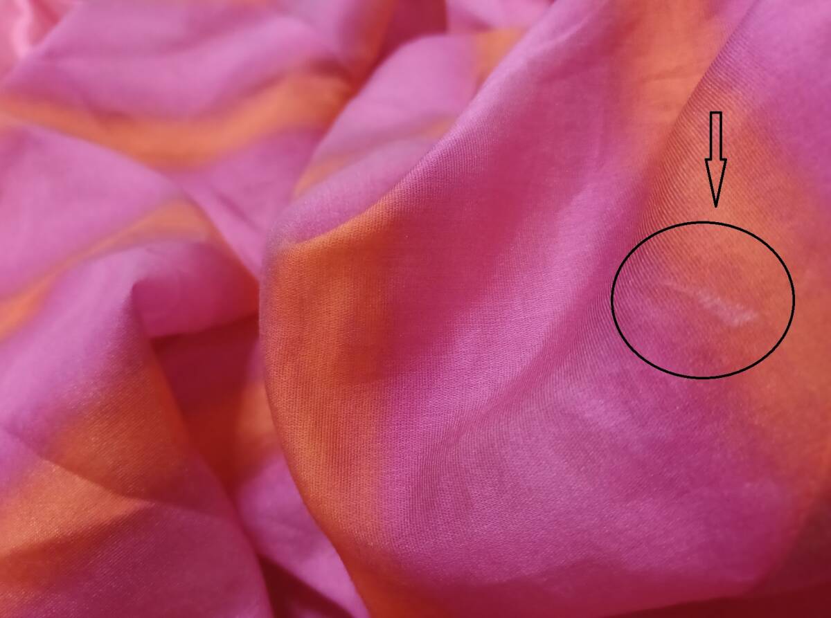 新品未使用品ですが一か所小さく染色の色が抜けたように薄い部分があります。画像8に載せましたのでご確認ください。