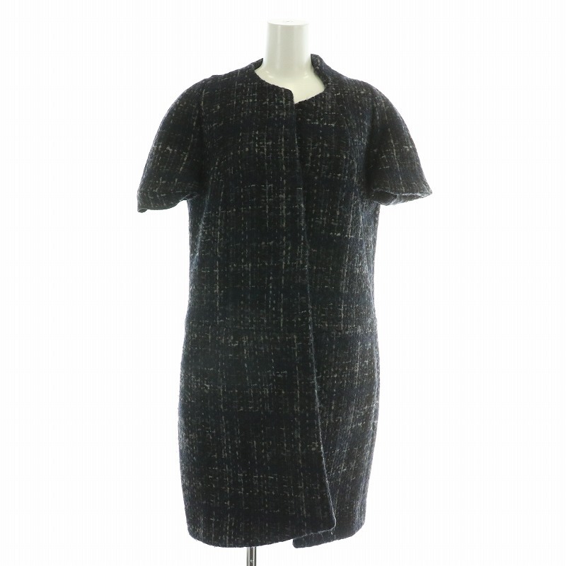 マルニ MARNI ノーカラーコート アウター 半袖 ロング丈 ウール 38 黒 ブラック 紺 ネイビー /BB レディース