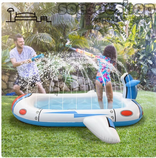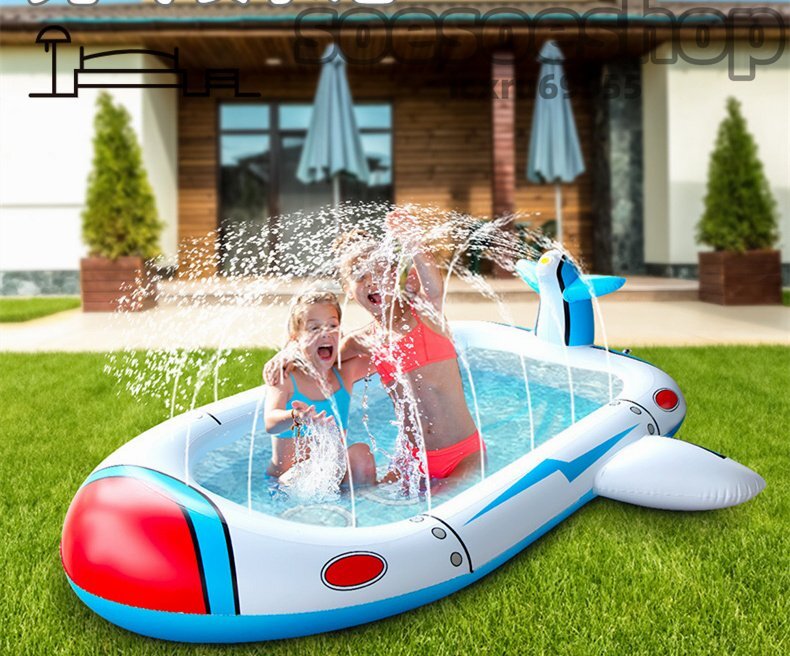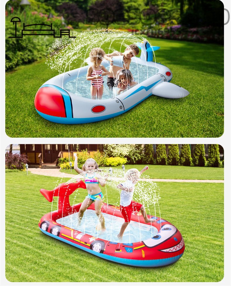 噴水マット 空気入れ 180*100cm 噴水プール 子供プール 家庭用 水遊び おもちゃ ビニールプール 夏対策 庭シャワー キッズプール 4色