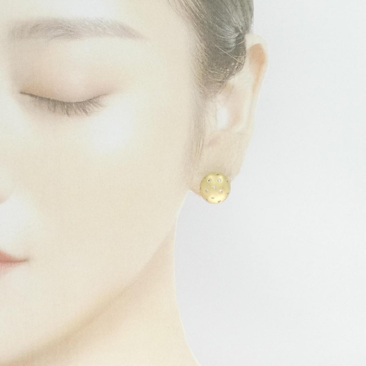 眩く煌めくダイヤモンドを水玉模様のようにあしらったピアス。マットな質感のイエローゴールドが耳元をシックな印象に仕上げてくれます。