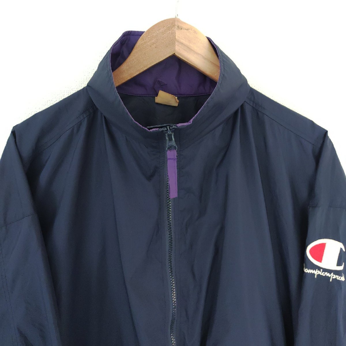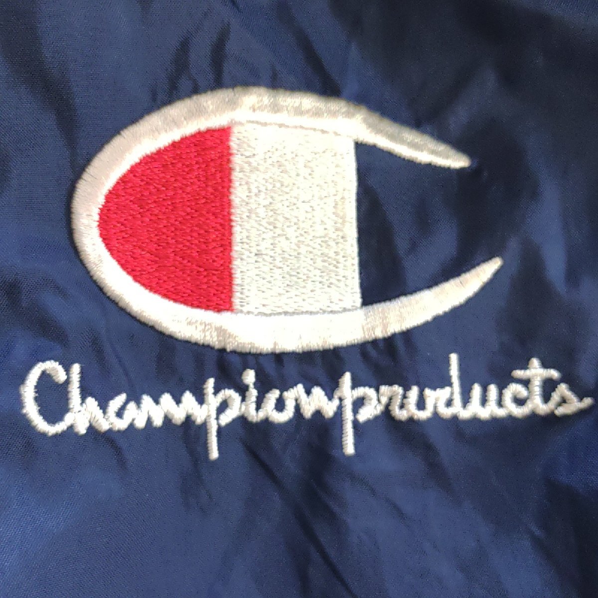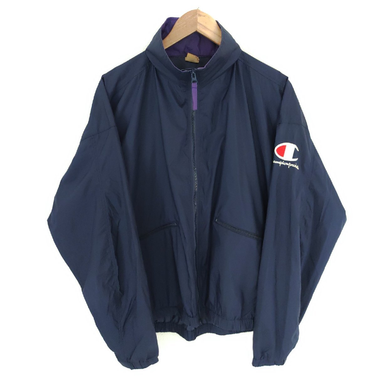 (^w^)b champion チャンピオン 80s 90s ビンテージ 長袖 ナイロン トラックジャケット ジャンパー ブルゾン 上着 スポーツ 紺 O O14194DD