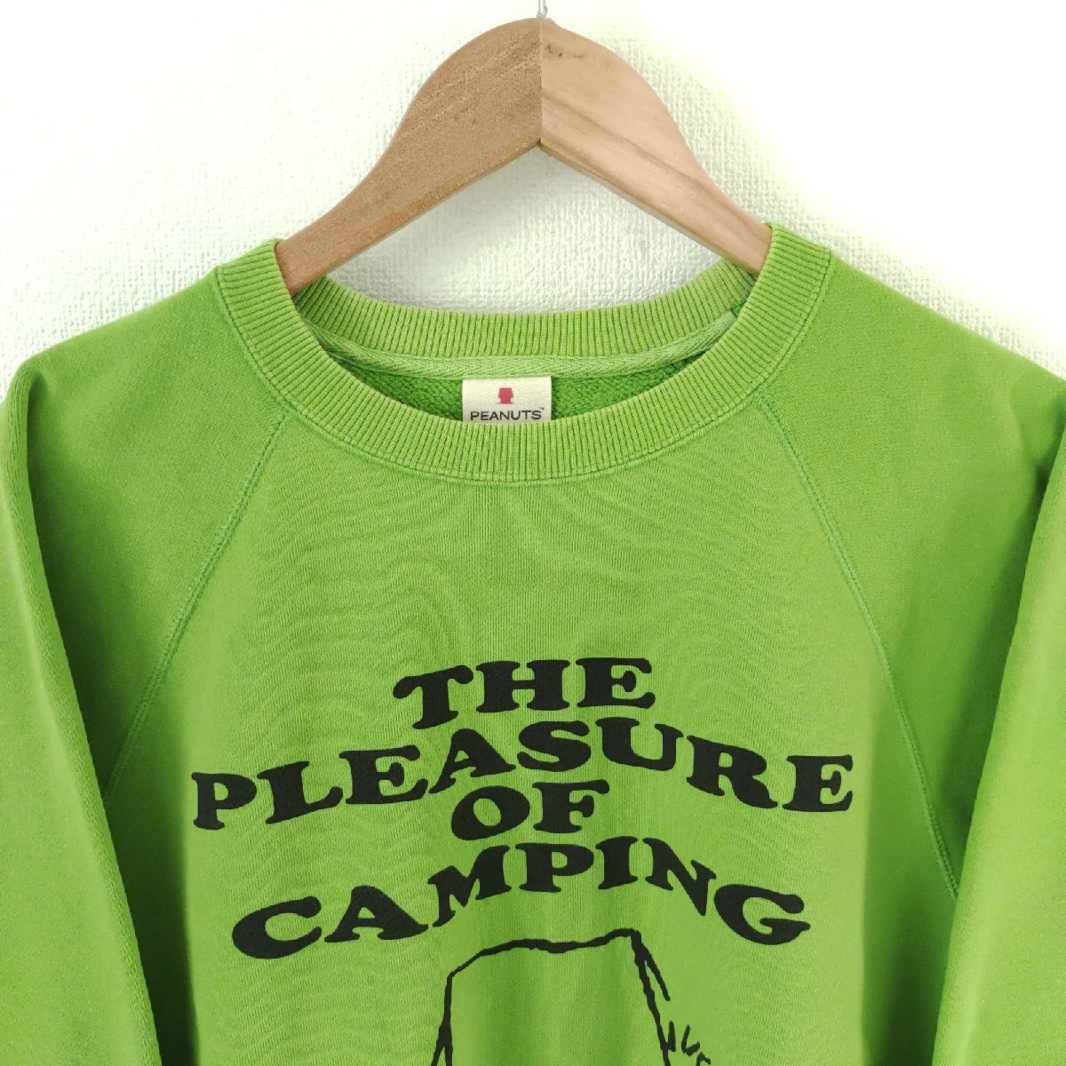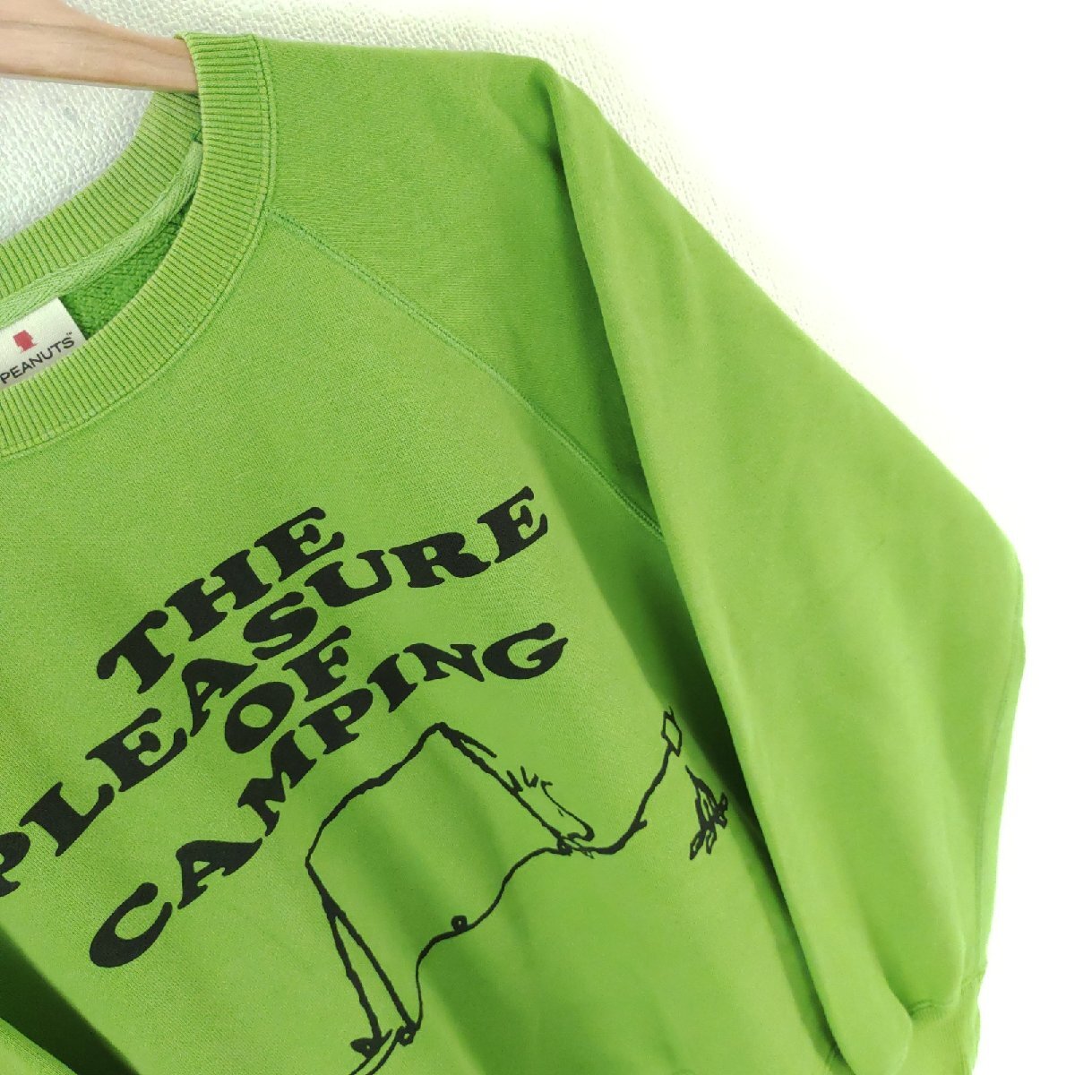 (^w^)b GU ジーユー PEANUTS スヌーピー 長袖 丸首 ラグラン ロゴ スウェット プルオーバー トレーナー トップス ストリート 緑 M O14159DD