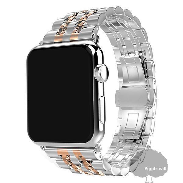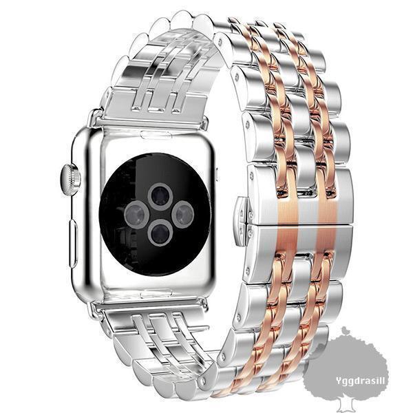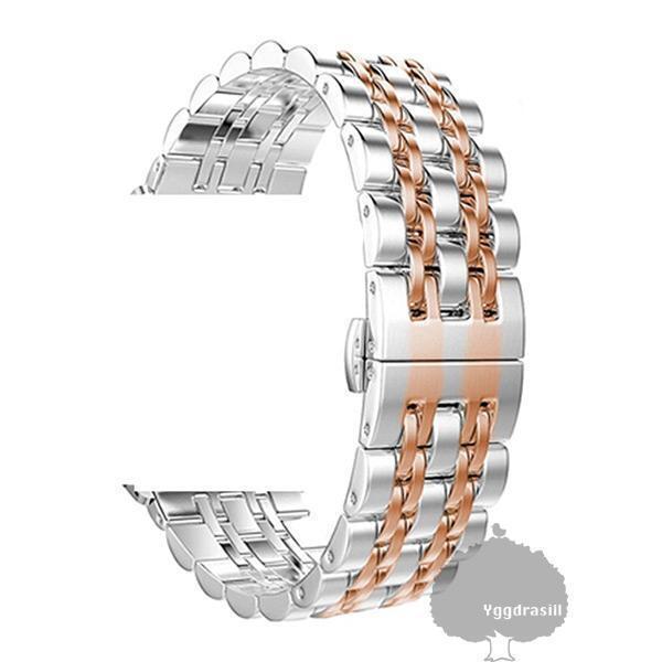 商品名:YGG★apple watch ジュビリー ステンレス バックル チェーン ベルト コンビカラー 38mm 40mm  41mm 42mm バンド ブロンズ 銀 ピンクゴールド×シルバー