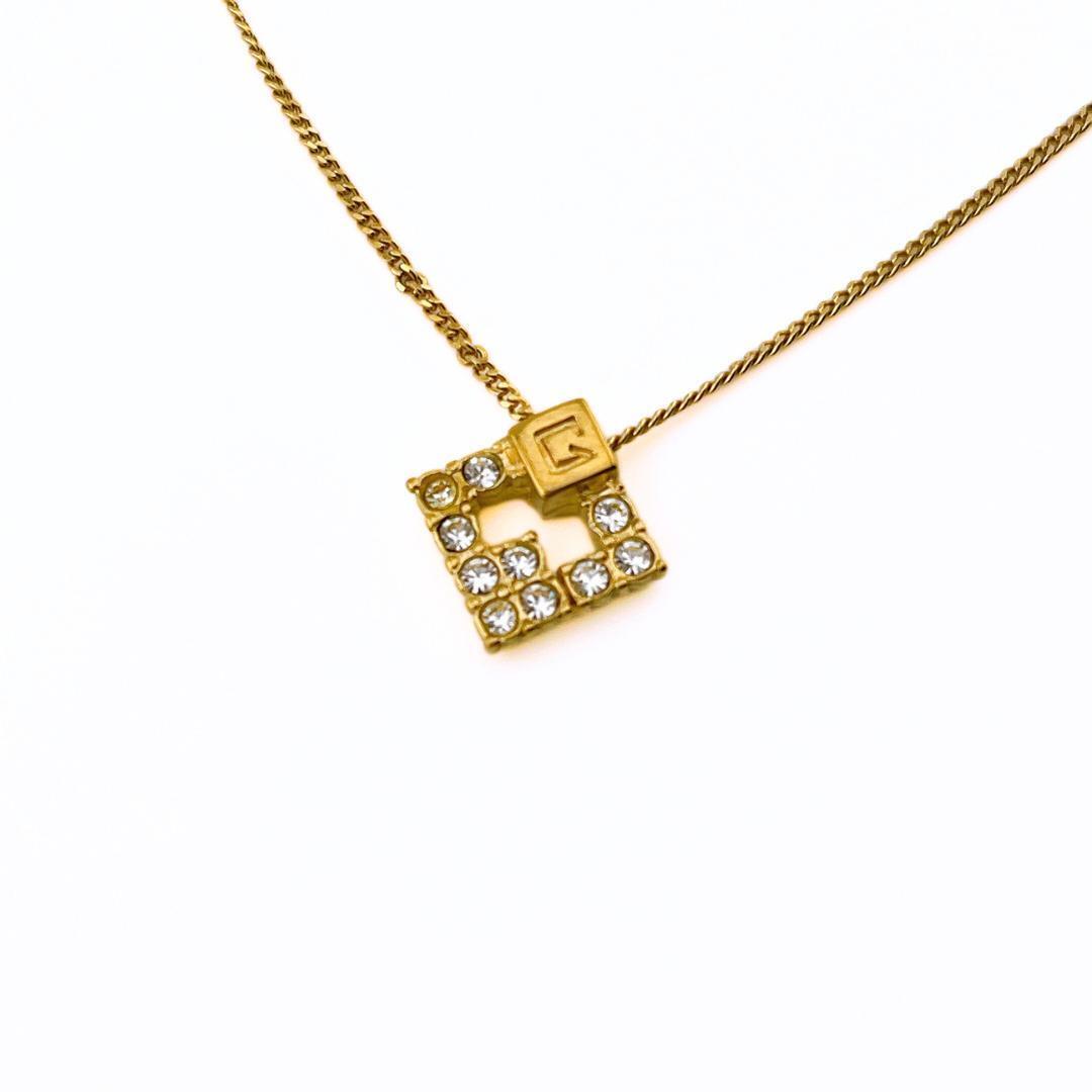 ・商品名(検索ワード): ネックレス Gロゴ ラインストーン スクエア ペンダント アクセサリー レディース ヴィンテージ ビンテージ