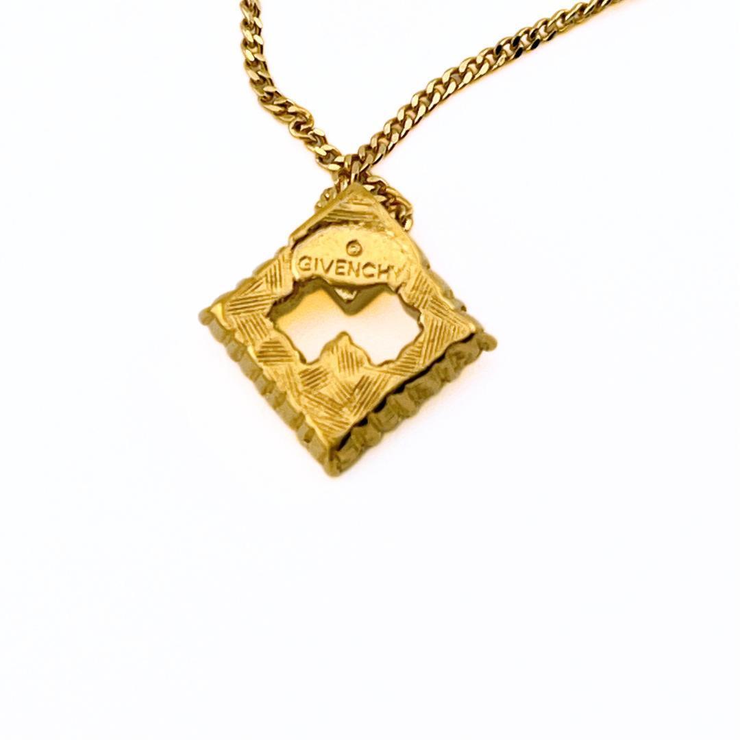 ・ゴールドカラーのスクエアモチーフに煌めくストーンを敷き詰めた、ジバンシィらしいエレガントなネックレス。程よい存在感ながら華美すぎず、普段使いから特別なシーンまで幅広く活躍する逸品です♪