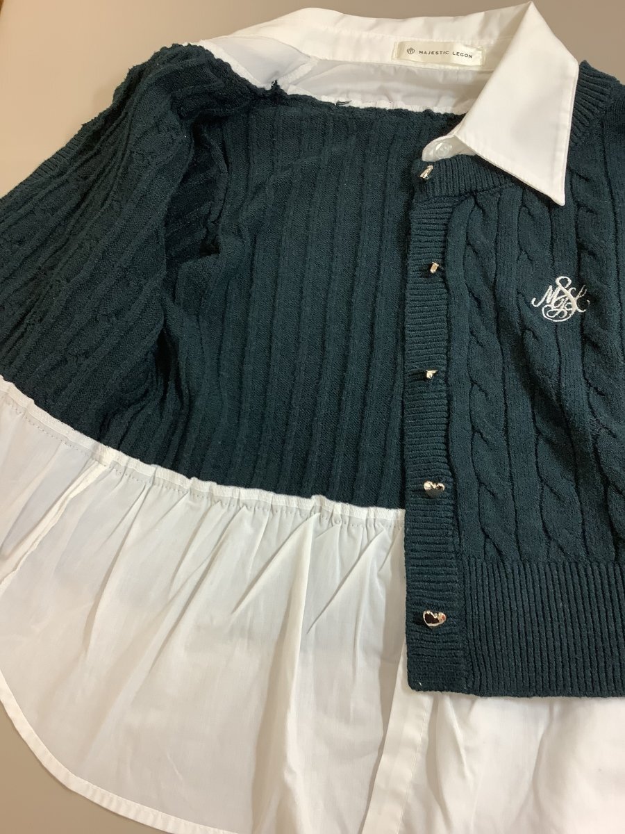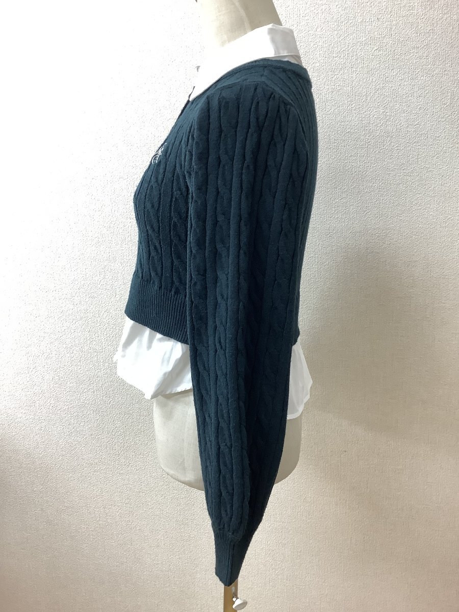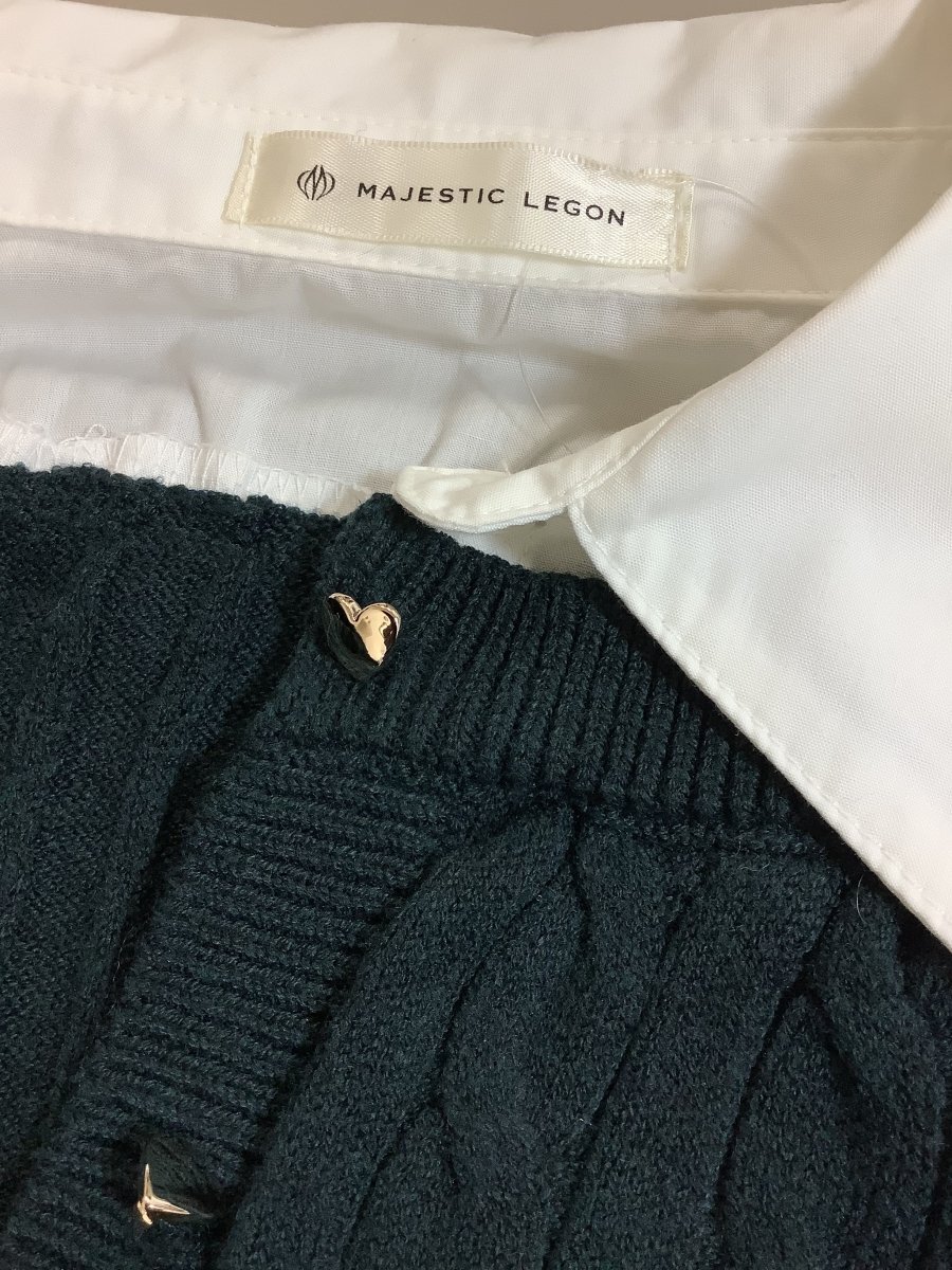 マジェスティックレゴン (Majestic Legon) 重ね着風カーディガン 深緑 ハートのボタン 【表示サイズ】 M 【平置き実寸】 脇下身幅 41cmほど 着丈 48cmほど 肩幅 33cmほど そで丈 57cmほど 【季節感】秋向け 【状態】 目立った傷や汚れなし 重ね着風前ボタンがハート型でカワイイ 衿とシャツ裾が縫い付けられています。身頃と袖はニットのみ。 当店管理番号:10^139027 ![]() ![]() |