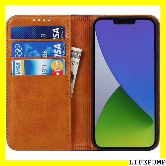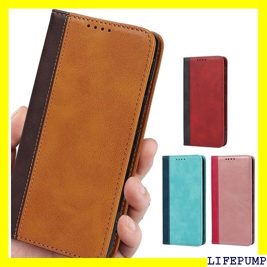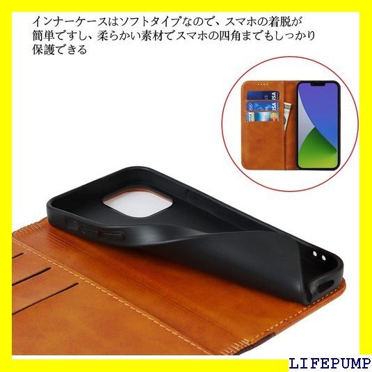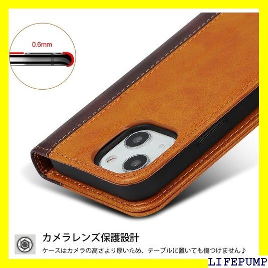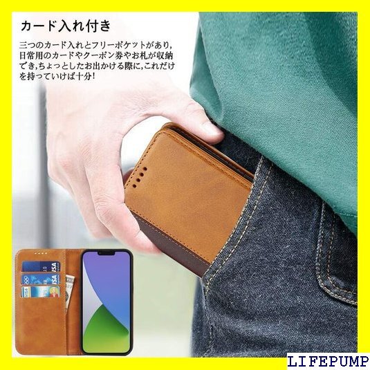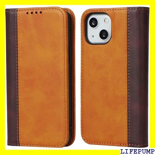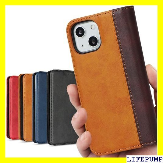 iPhone 14 ケース 手帳型 アイフォン14 i ド機能 落ち着いた色 2色組合せ レトロ ライトブラウン 476