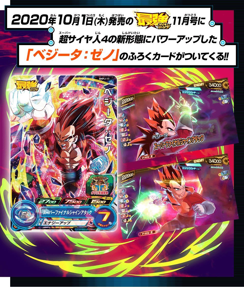 『最強ジャンプ』2020年10月号の付録、「ベジータ:ゼノ」カードやポスターなどが封入されている付録です。
