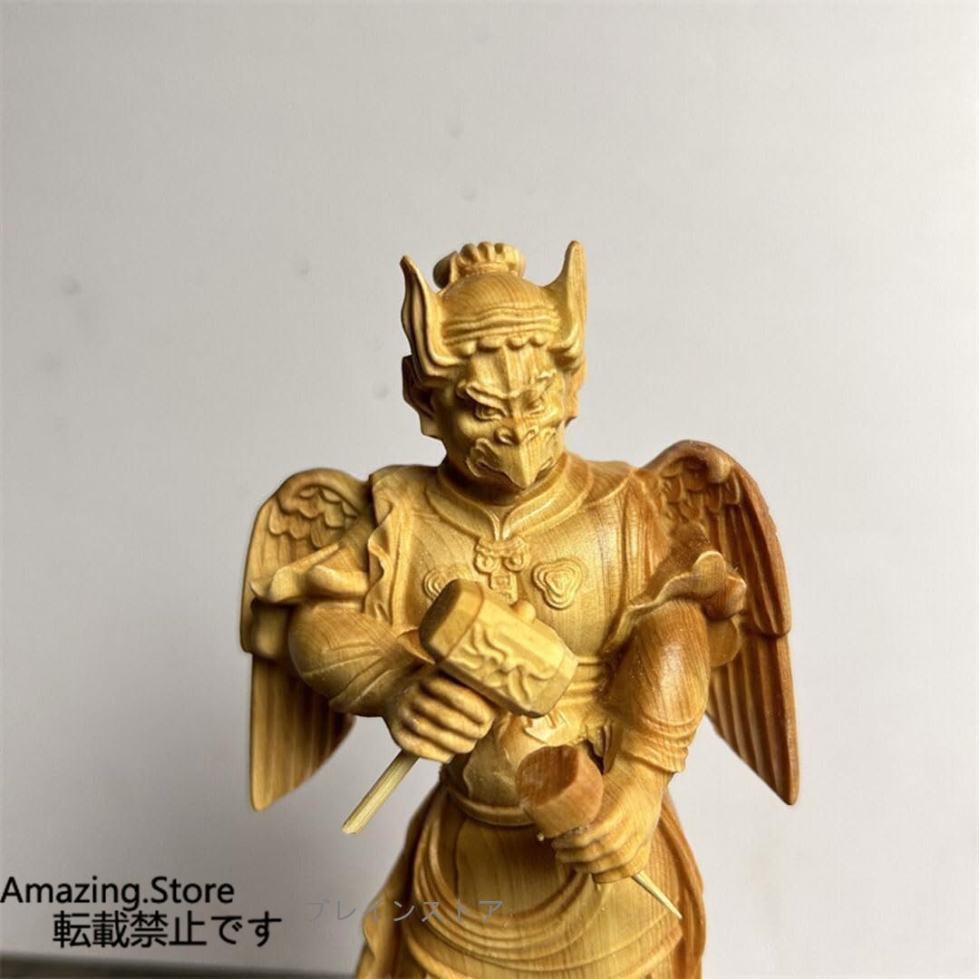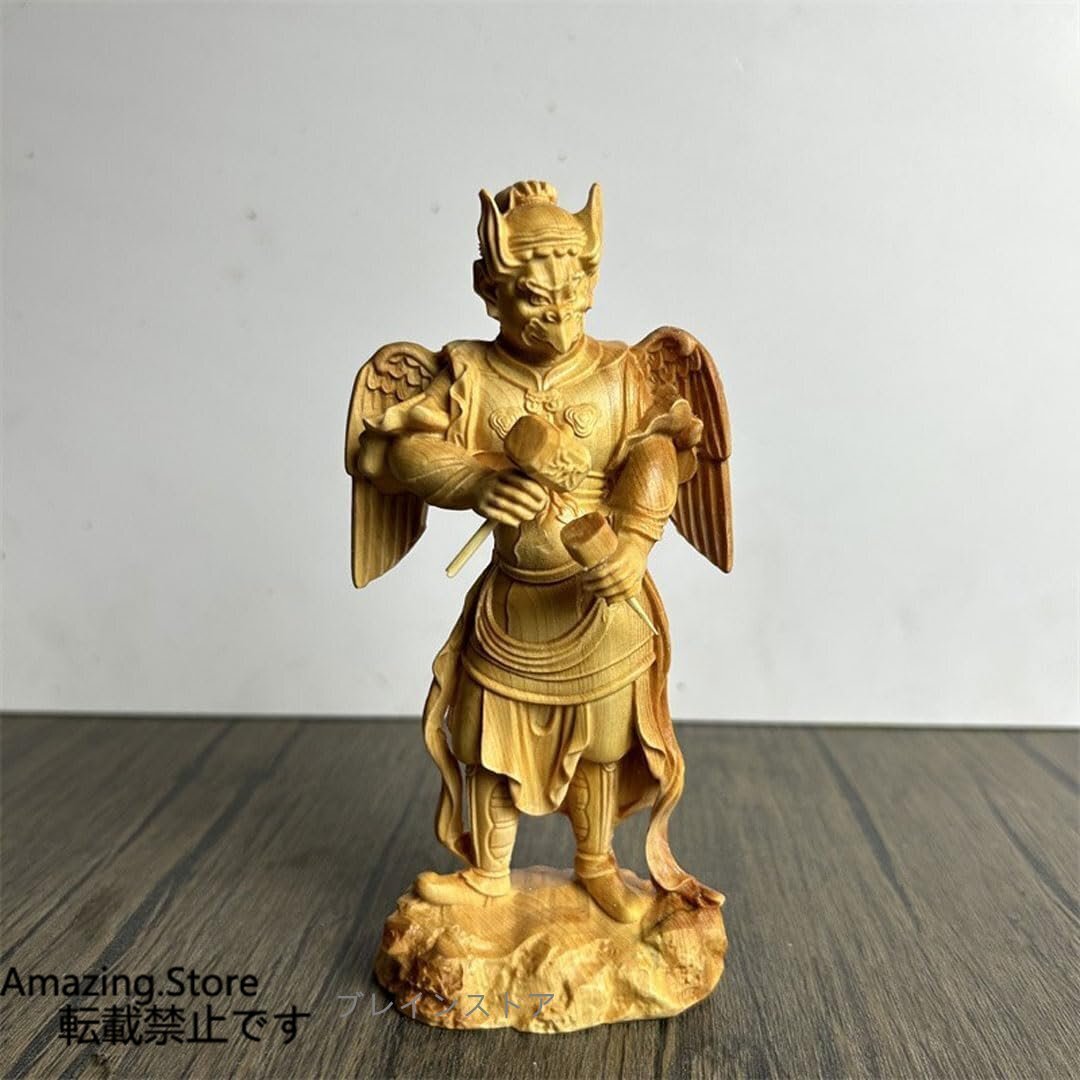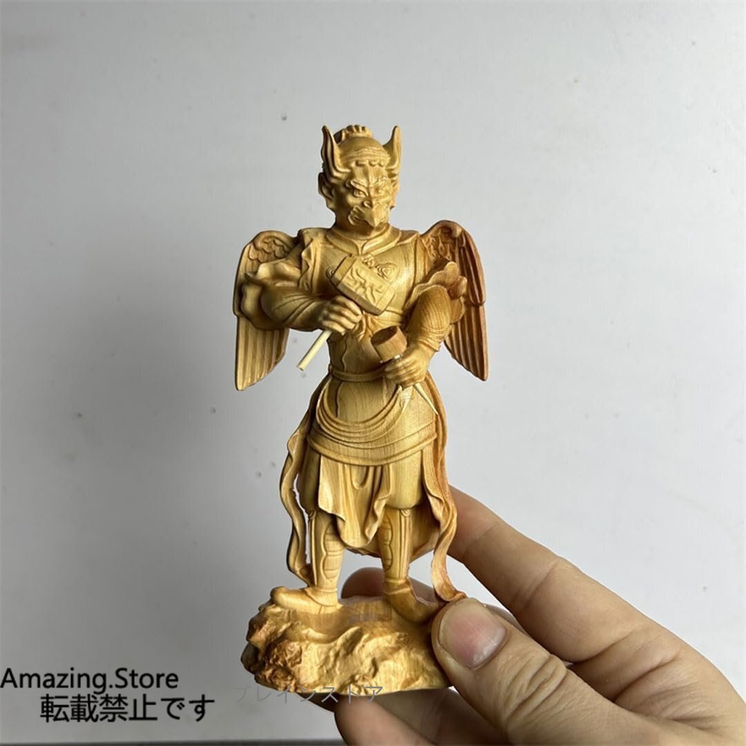 木彫り仏像 烏天狗 置物【諸天神】桧木製高級木彫り 総高20cm