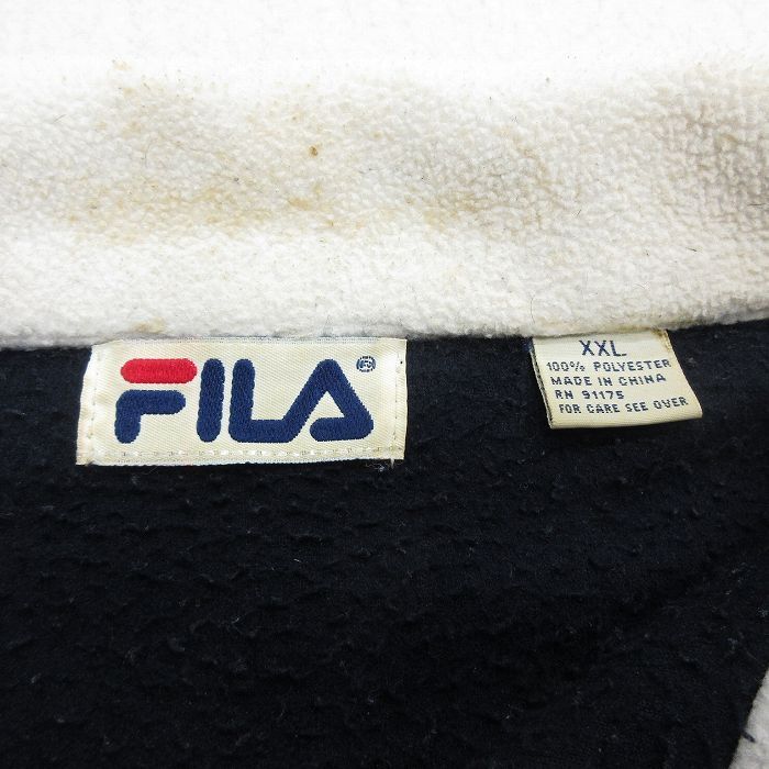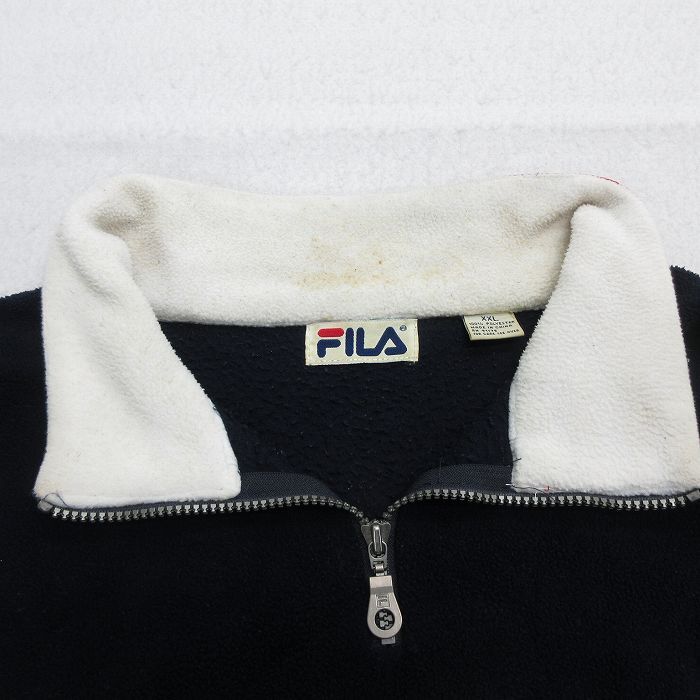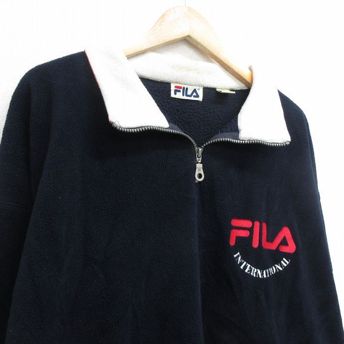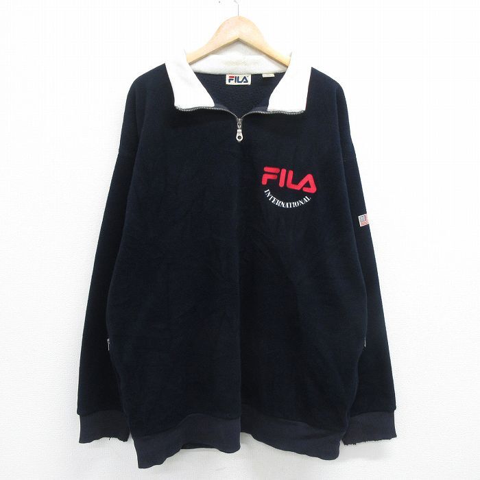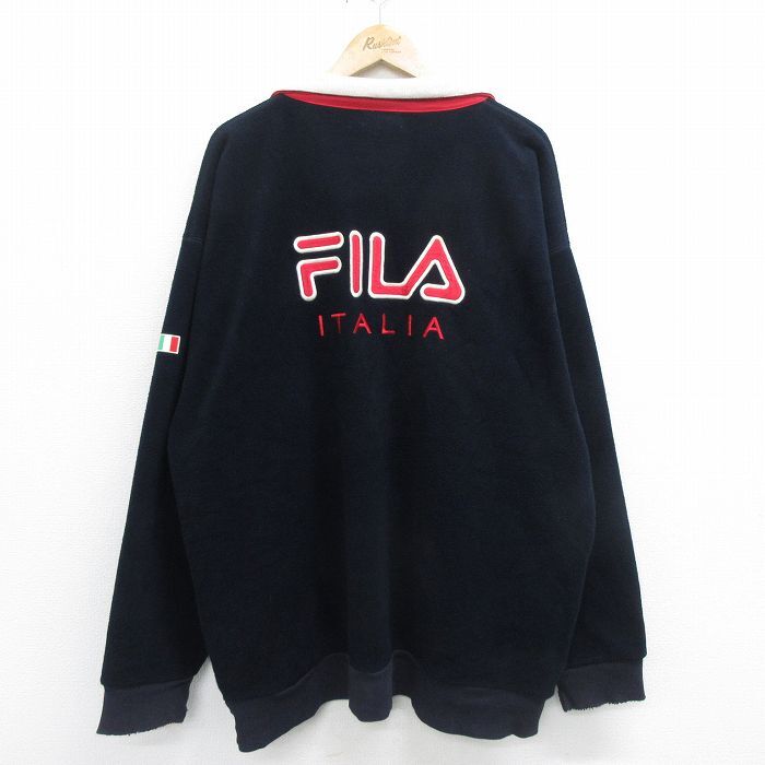 【商品名】 XL★古着 フィラ FILA 長袖 ハーフジップ フリース ジャケット メンズ 90年代 90s ビッグロゴ イタリア 刺繍 大きいサイズ ロング丈 濃紺