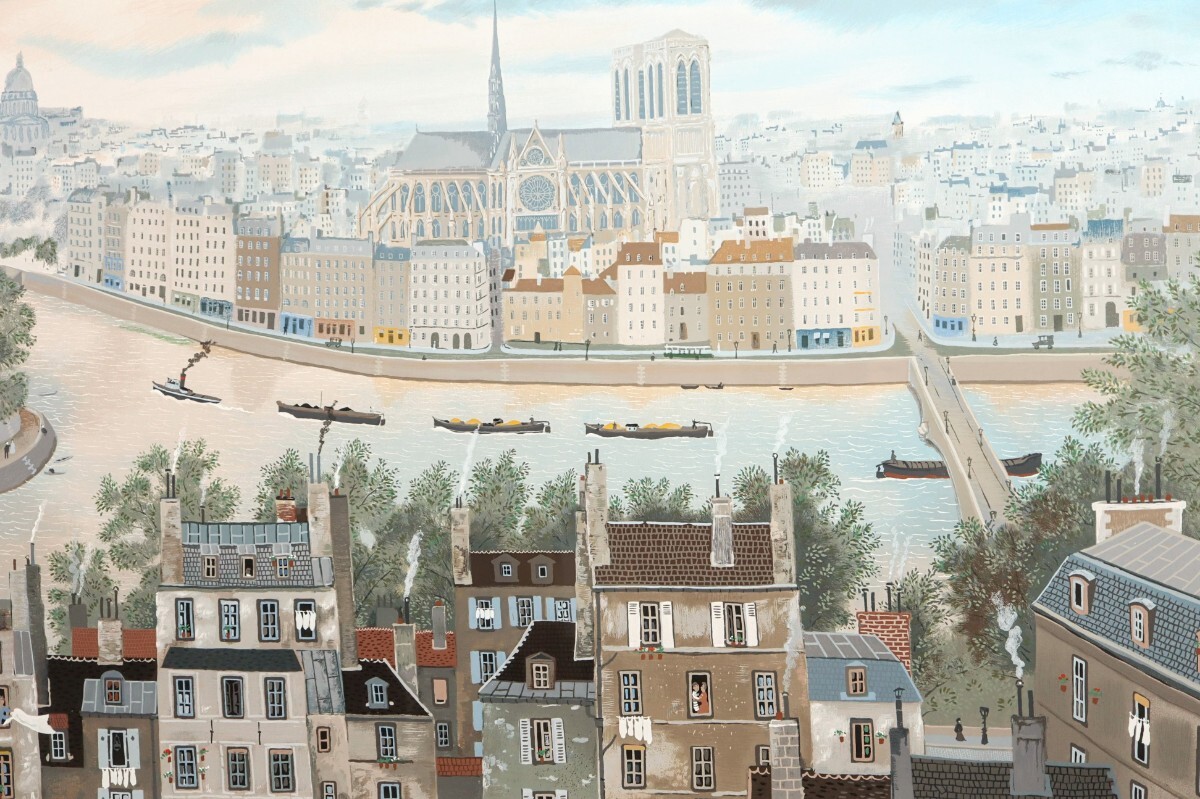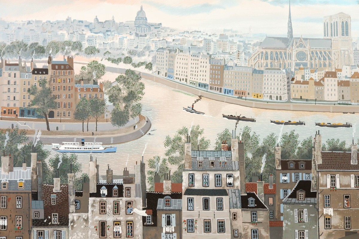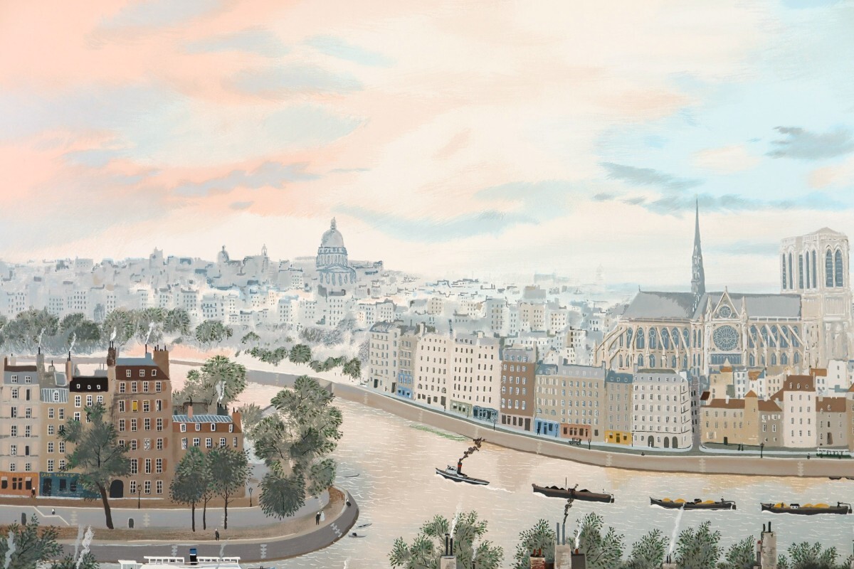 ノートルダム寺院が中央に見える大パノラマ作品で