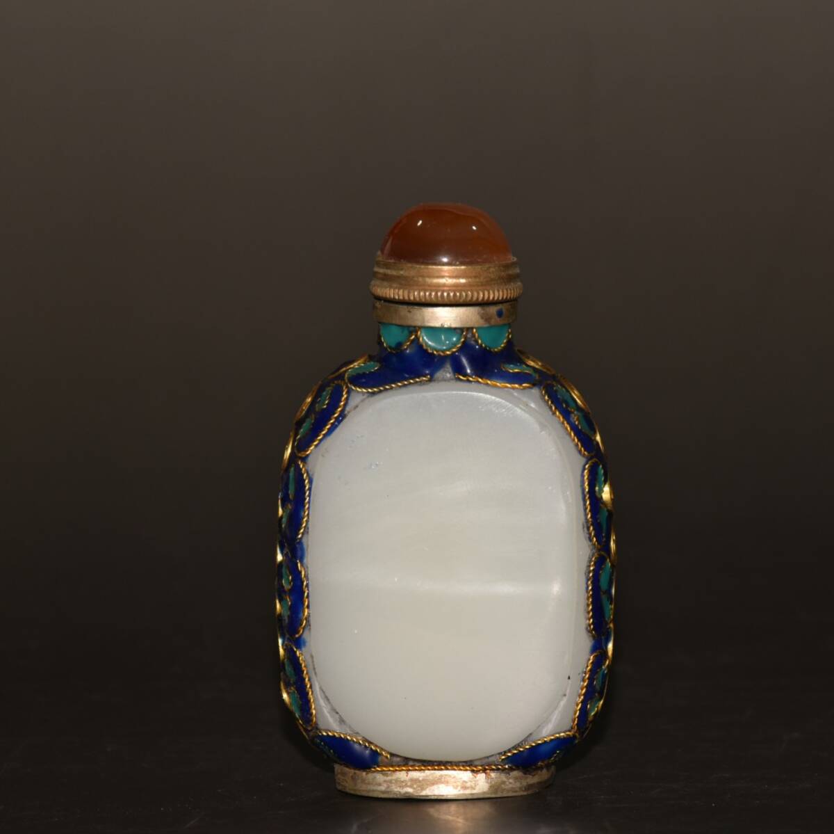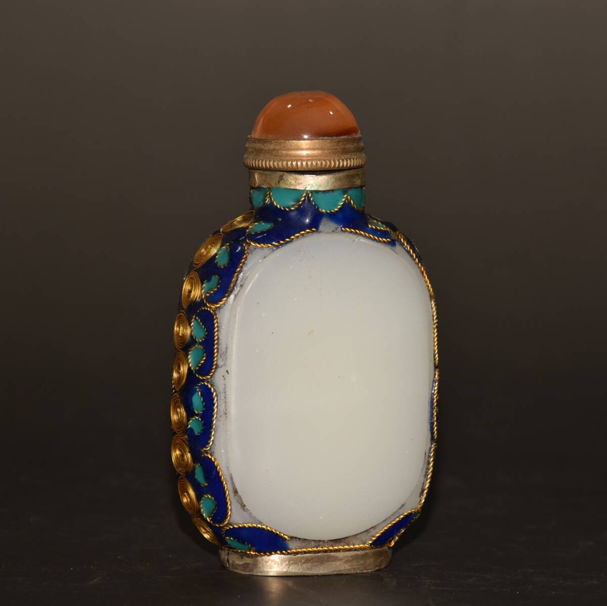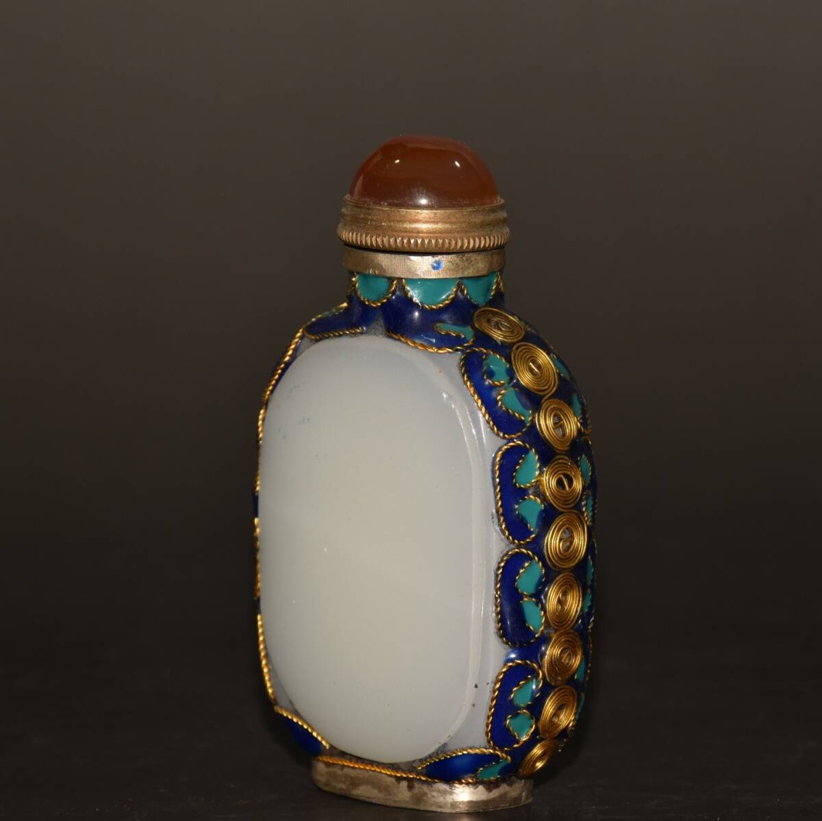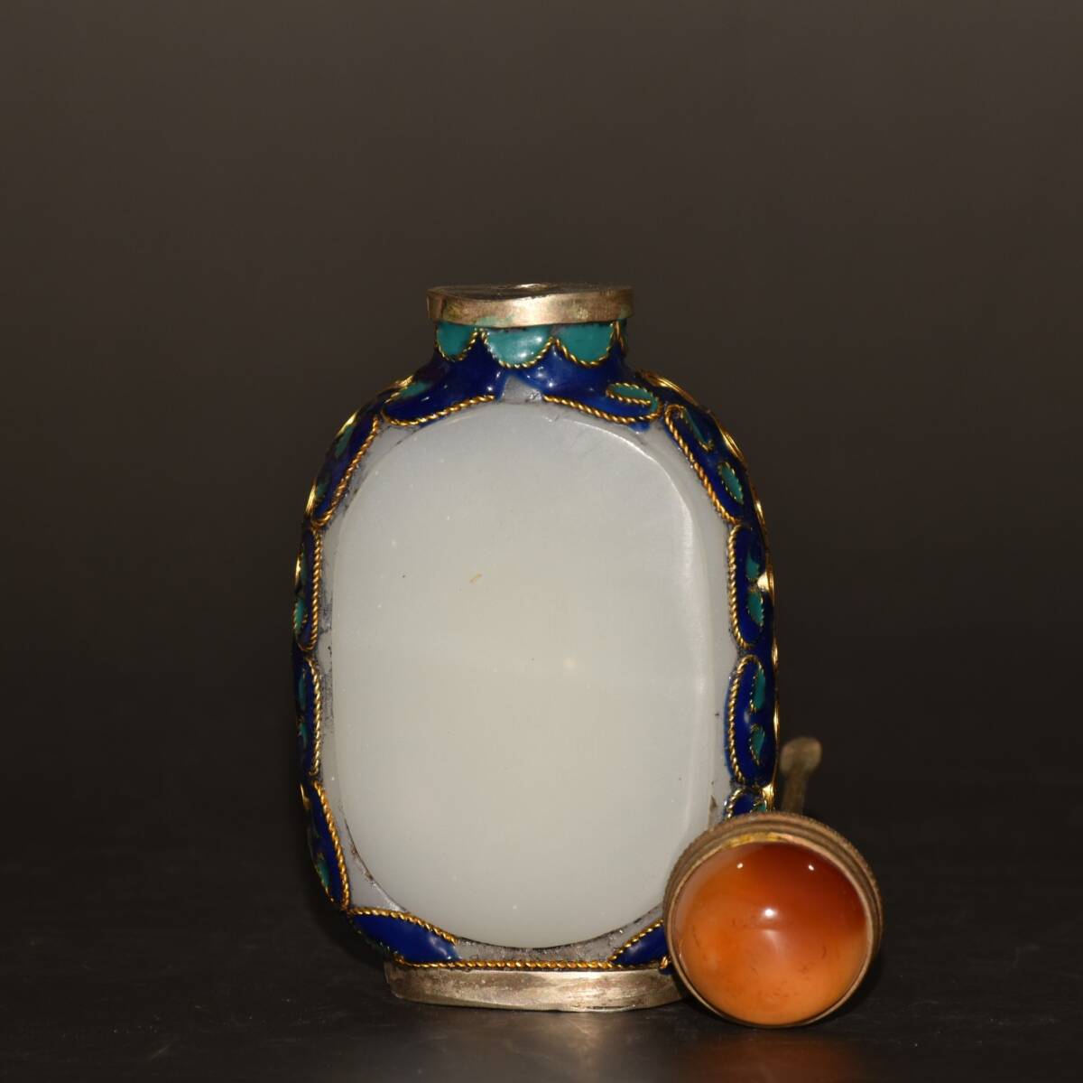 中国骨董品 和田玉『瑠璃包白銅景泰藍糸締め鼻煙壺の置物です』 彫刻工芸品 伝世家珍 風水開運 精美彫 收藏品 置物 | ||||||