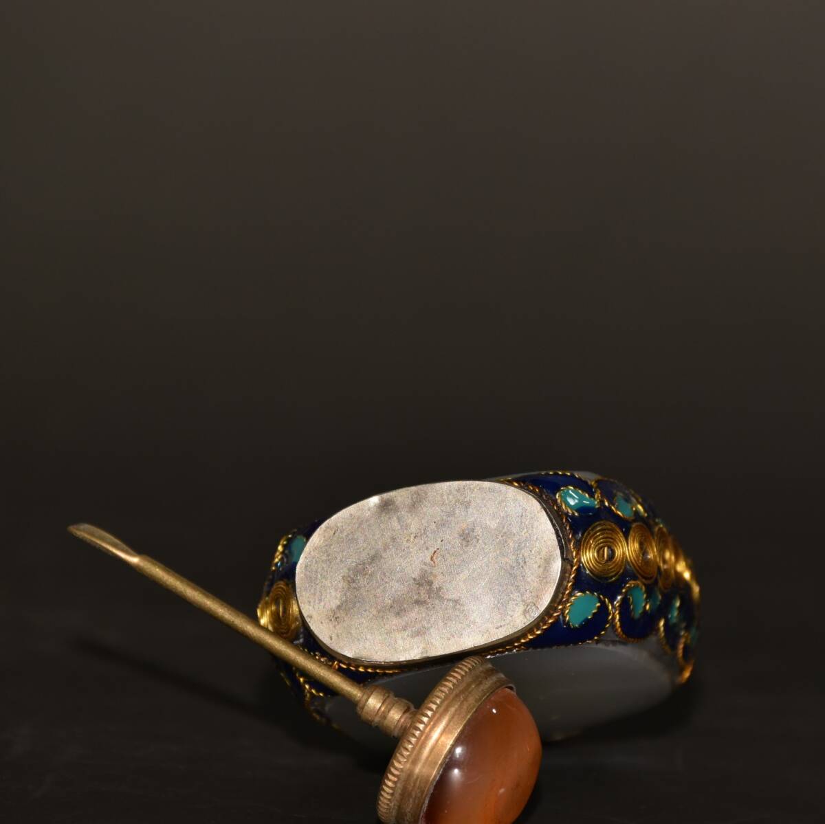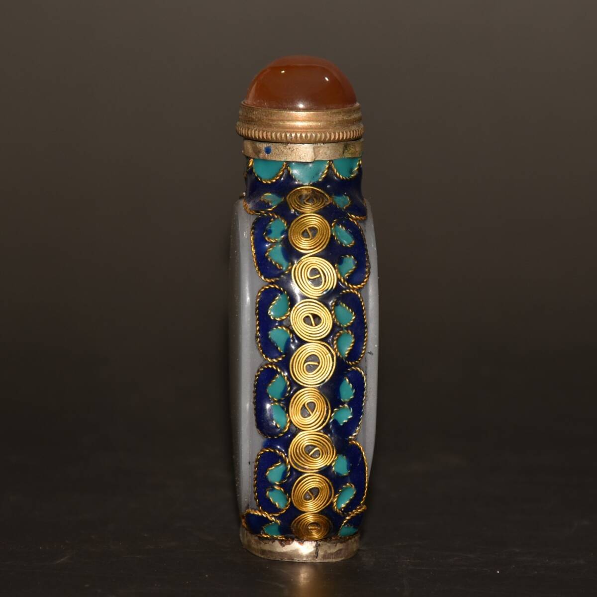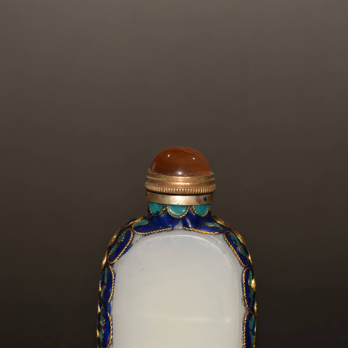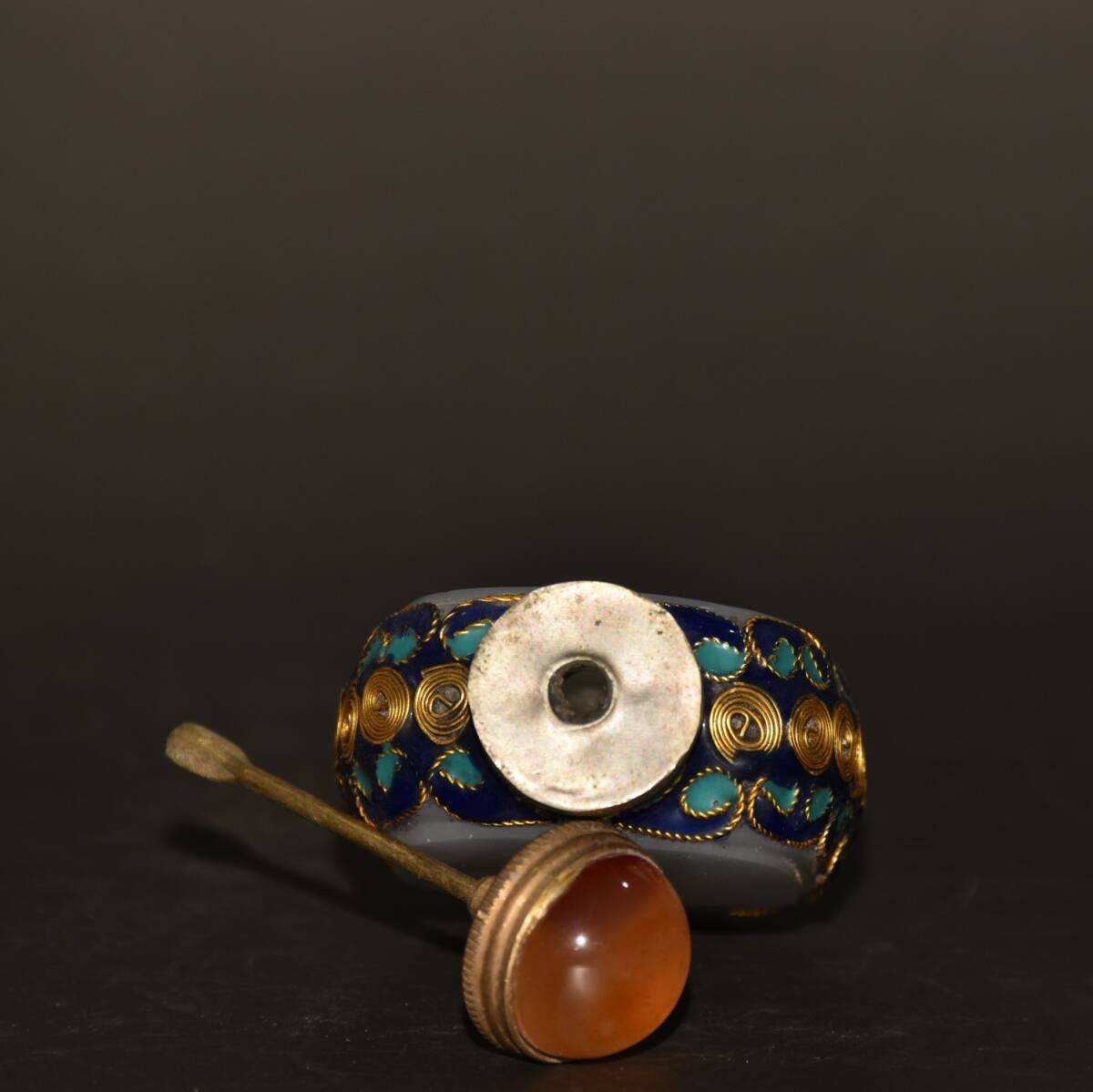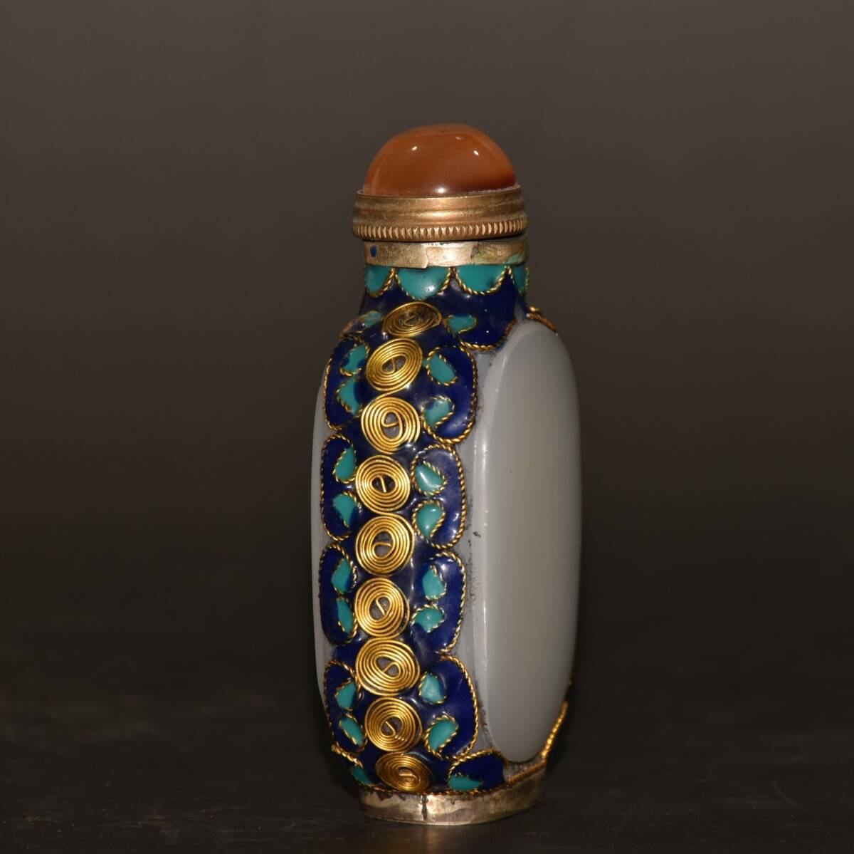 中国骨董品 和田玉『瑠璃包白銅景泰藍糸締め鼻煙壺の置物です』 彫刻工芸品 伝世家珍 風水開運 精美彫 收藏品 置物 | ||||||