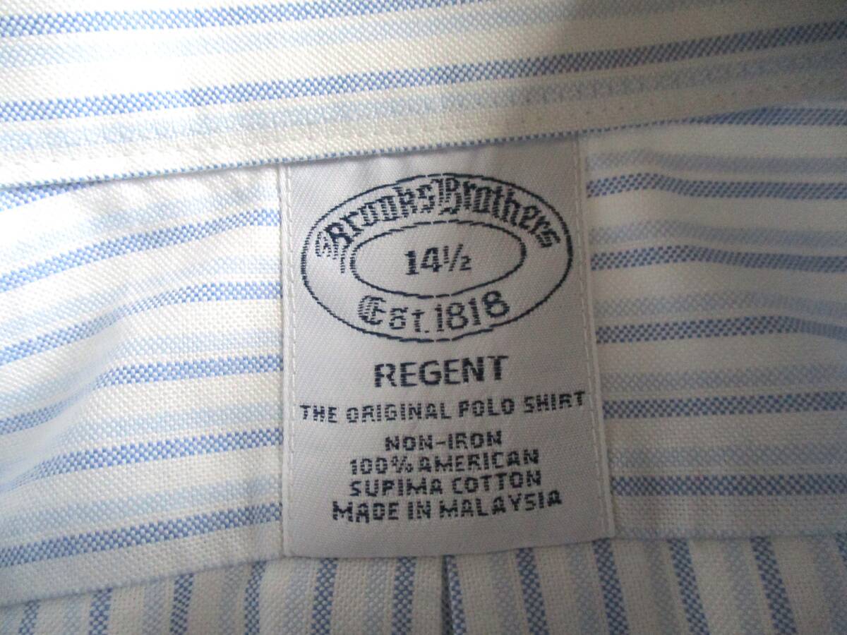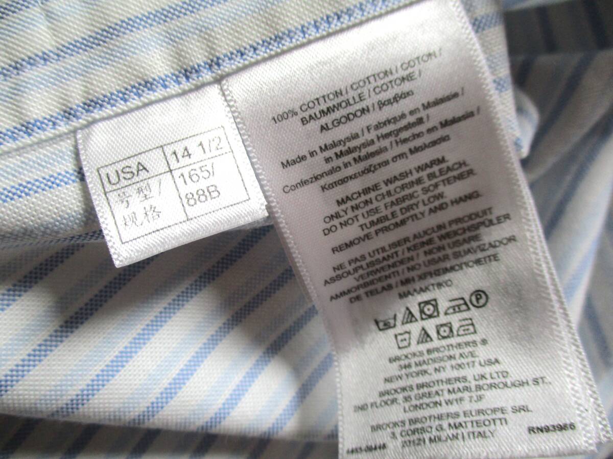 白×薄青★ 14.5 ブルックスブラザーズ★ 半袖ストライプOXBDシャツ★ NON-IRON slim-fit