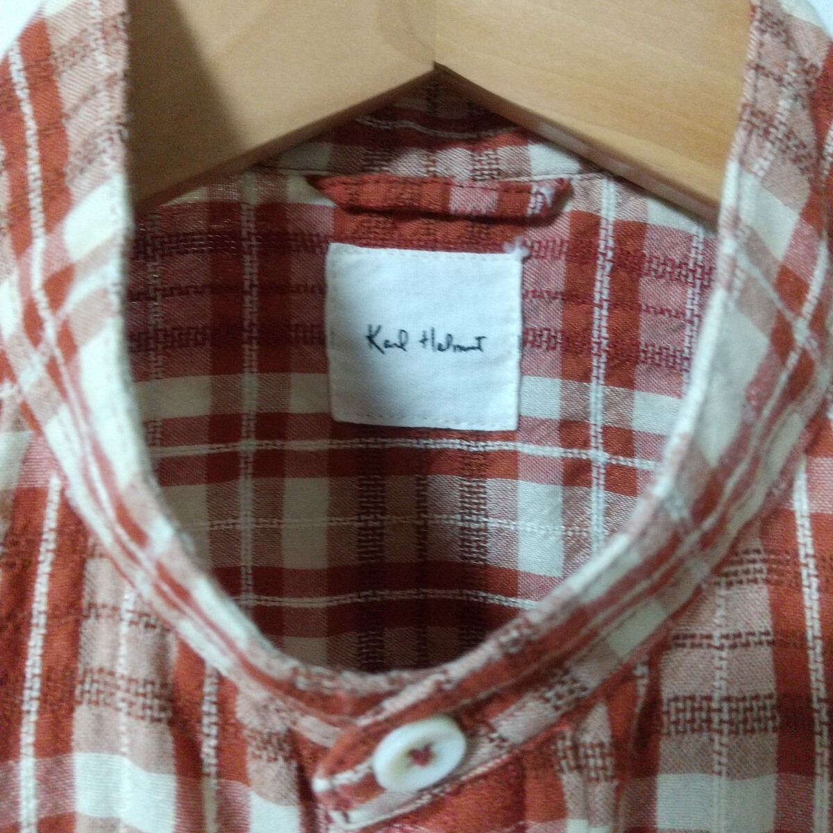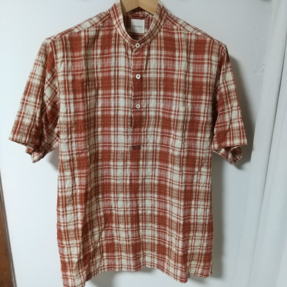 スタンドカラー チェック プルオーバー 半袖シャツ
