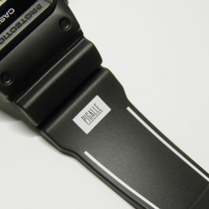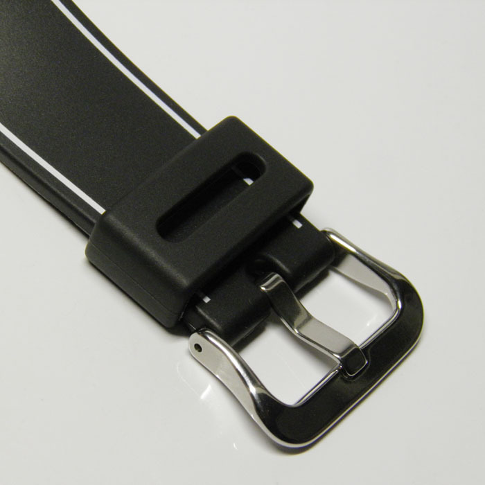 ブラックボディにミラーダイヤル、バンドにはホワイトのライン入れ