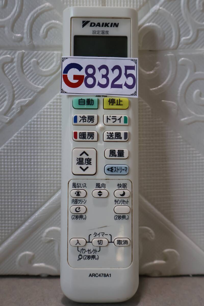 G8325 (1) P【動作確認済・完動品】DAIKIN ダイキン エアコン リモコン ARC478A1 純正品 中古
