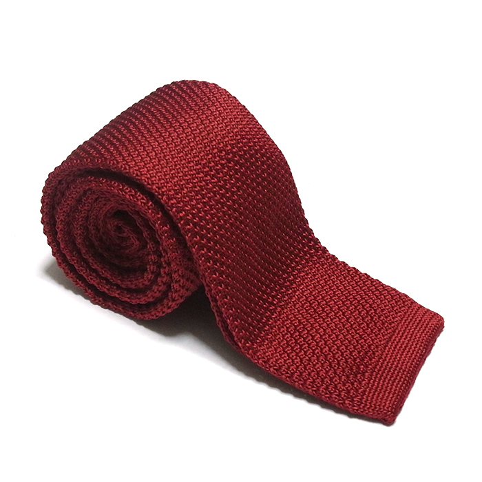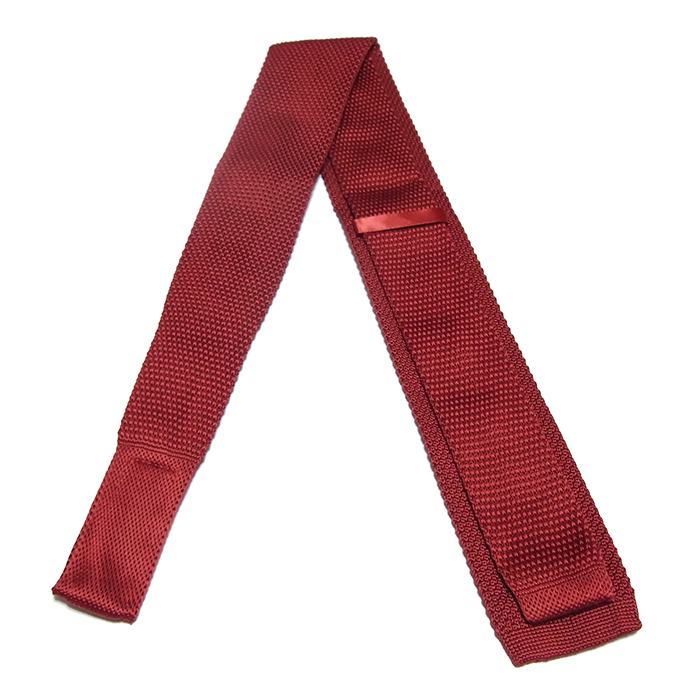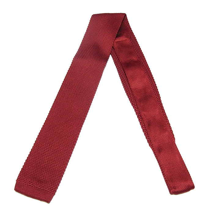 ネクタイ ニットタイ 無地 ワインレッド スクエアエンド ナロータイ tie-0156