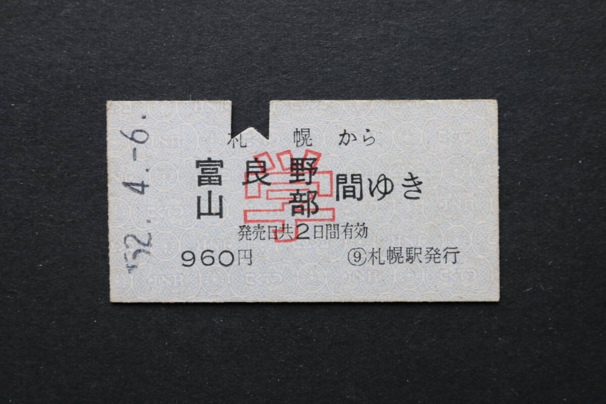 学生乗車券 札幌から 富良野 山部 間ゆき 960円