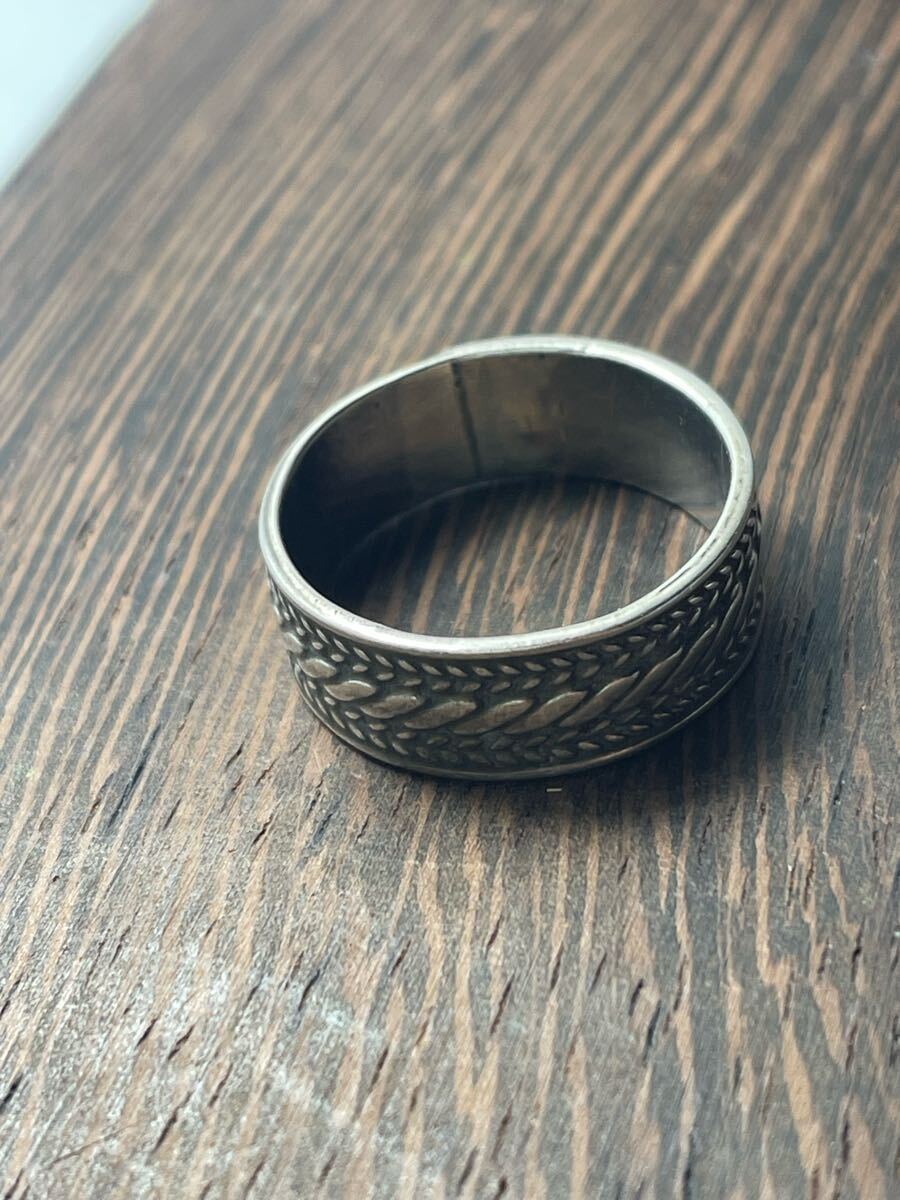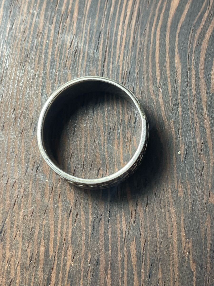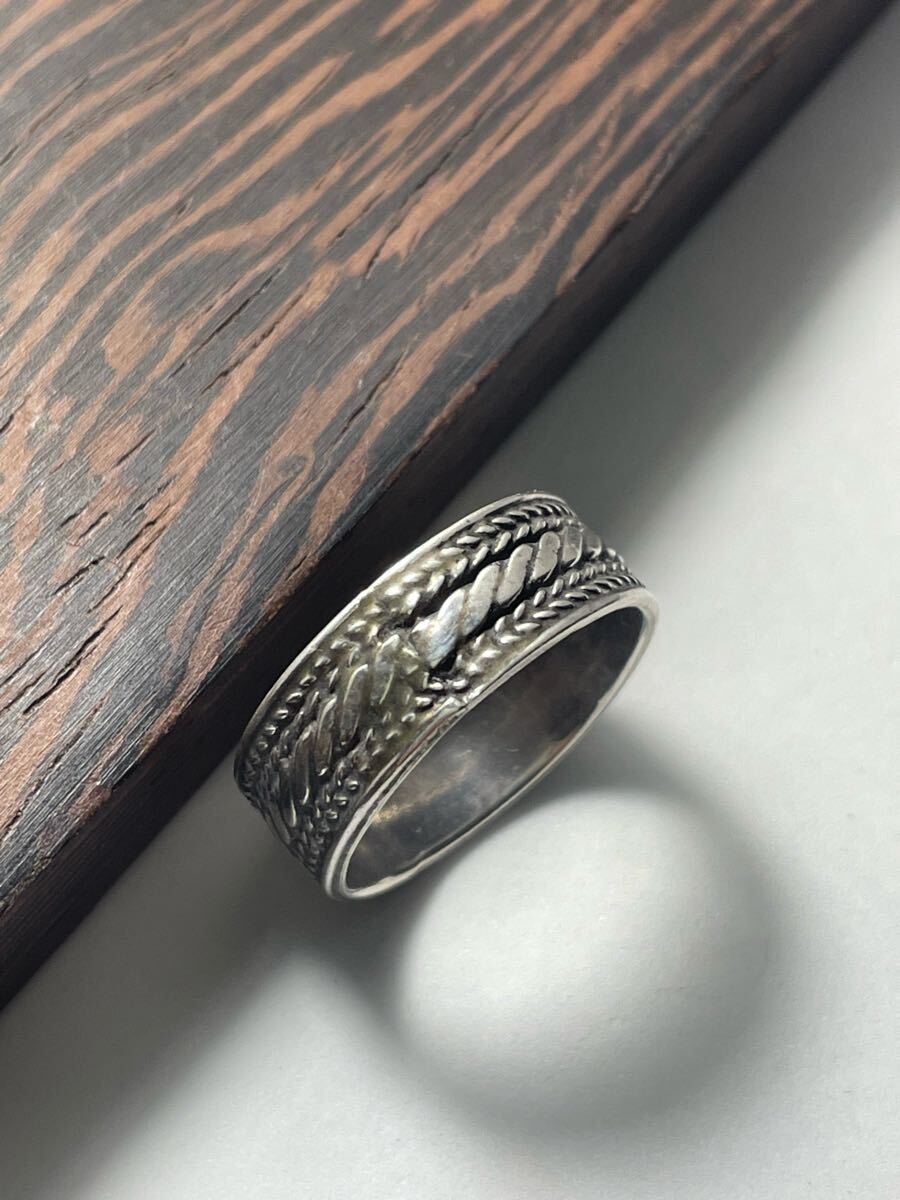 燻加工によって付けられたブラックとシルバーのコントラストが美しく、繊細なデザインを強調しています。