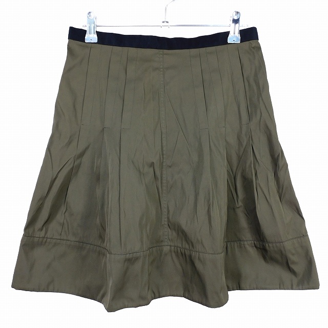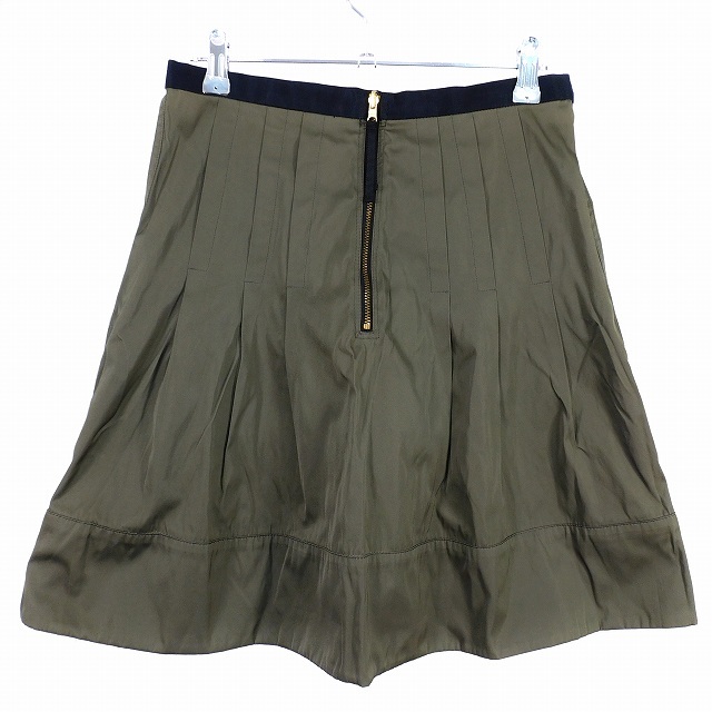 フォンセ FONCE フレアスカート ミニ タック バックファスナー 無地 38 カーキ ボトムス /T2 レディース