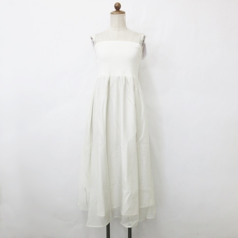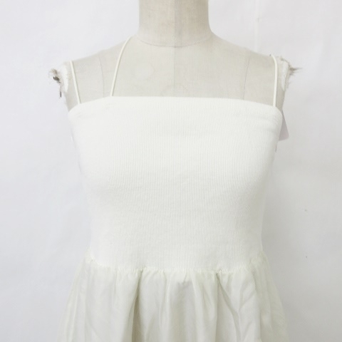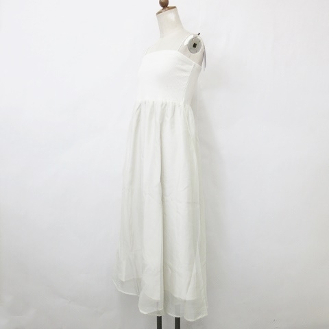 未使用品 ジュノア JUNOAH ワンピース キャミワンピース ロング アシメトリーストラップ 異素材切替 アイボリー M レディース